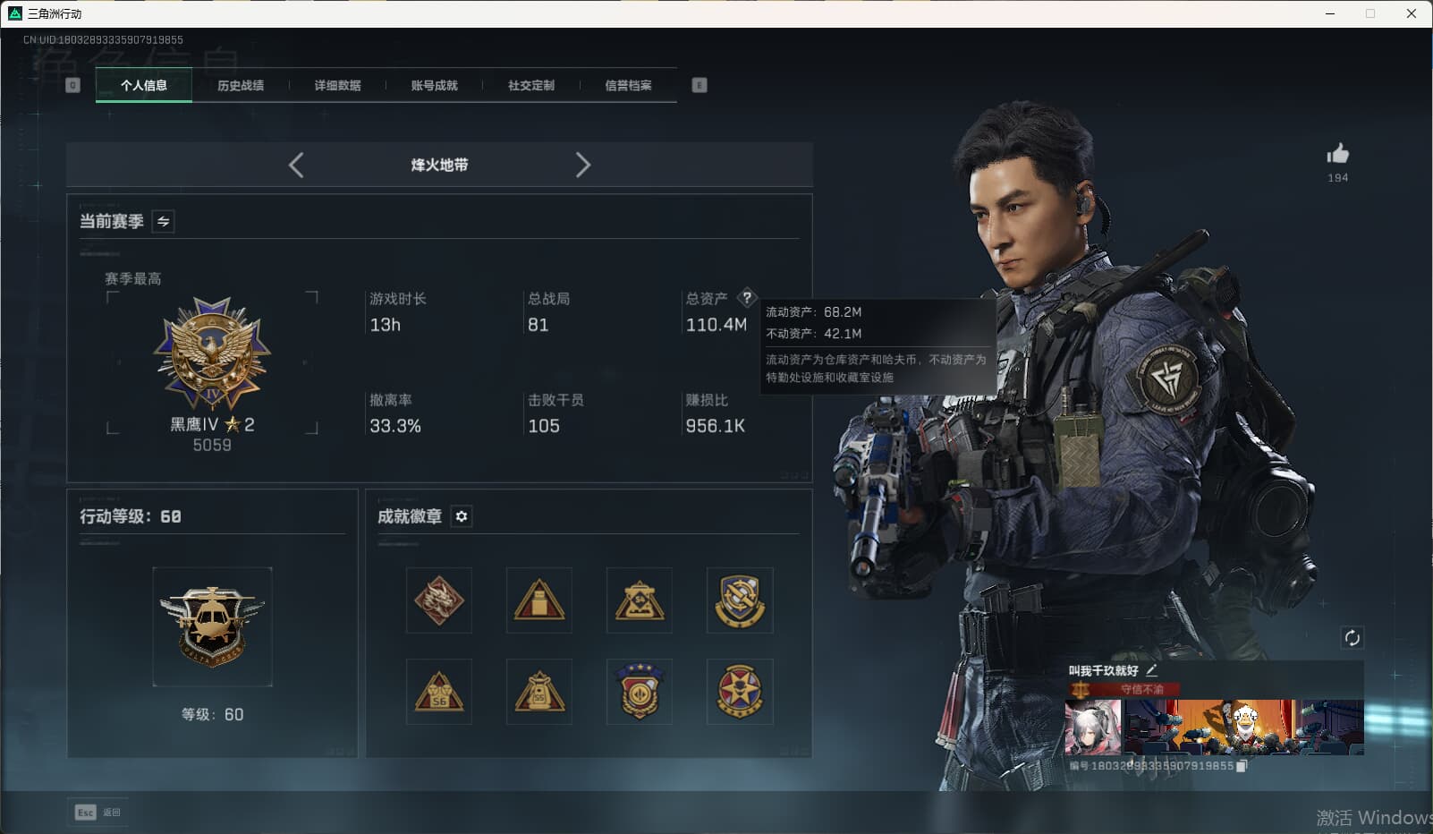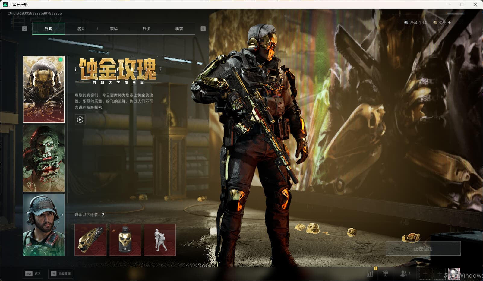c8540/QQ区/总资产110M/满体力/【干员皮肤:红狼-蚀金玫瑰/红狼-电锯惊魂/威龙-飞虎/