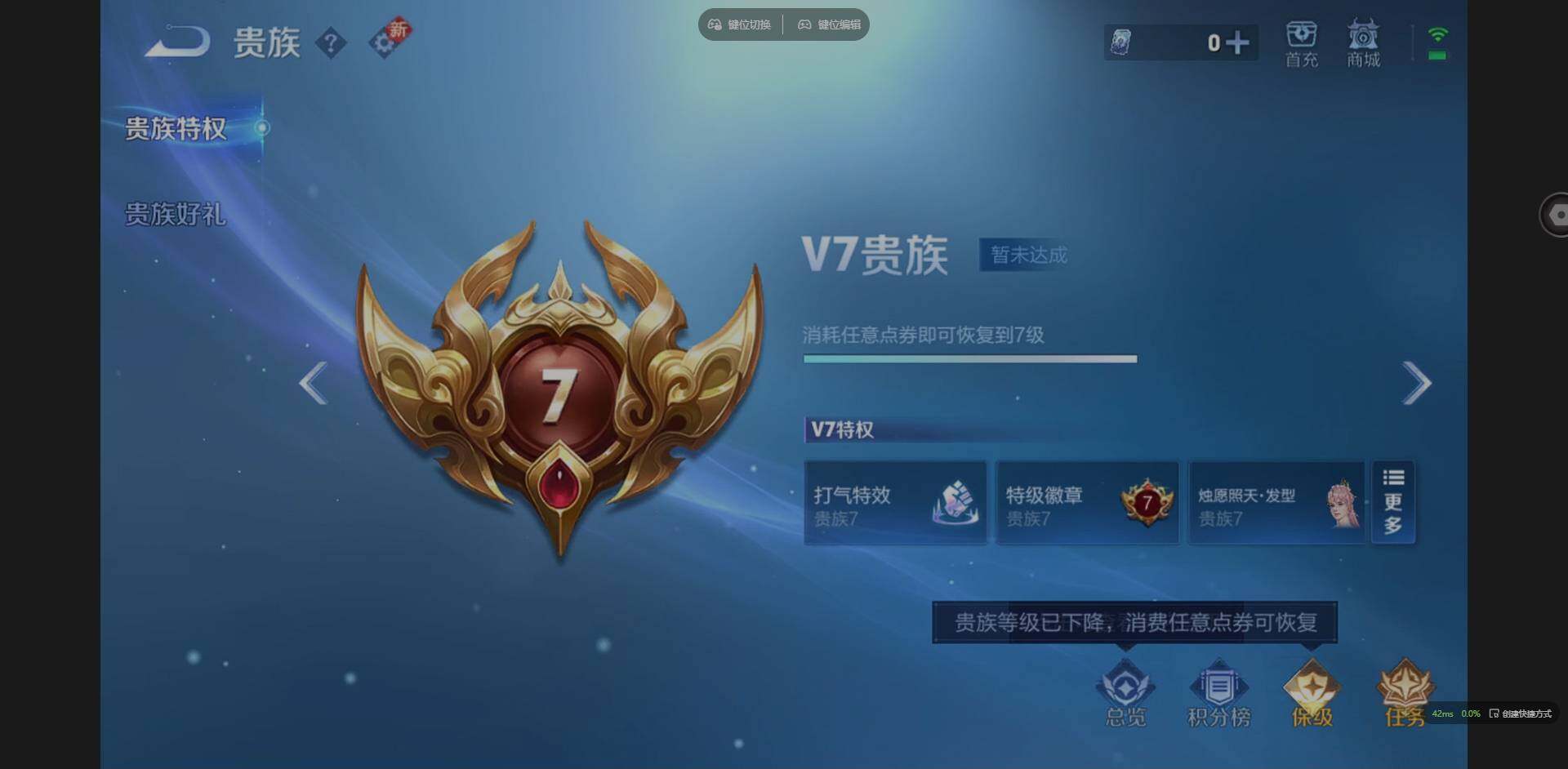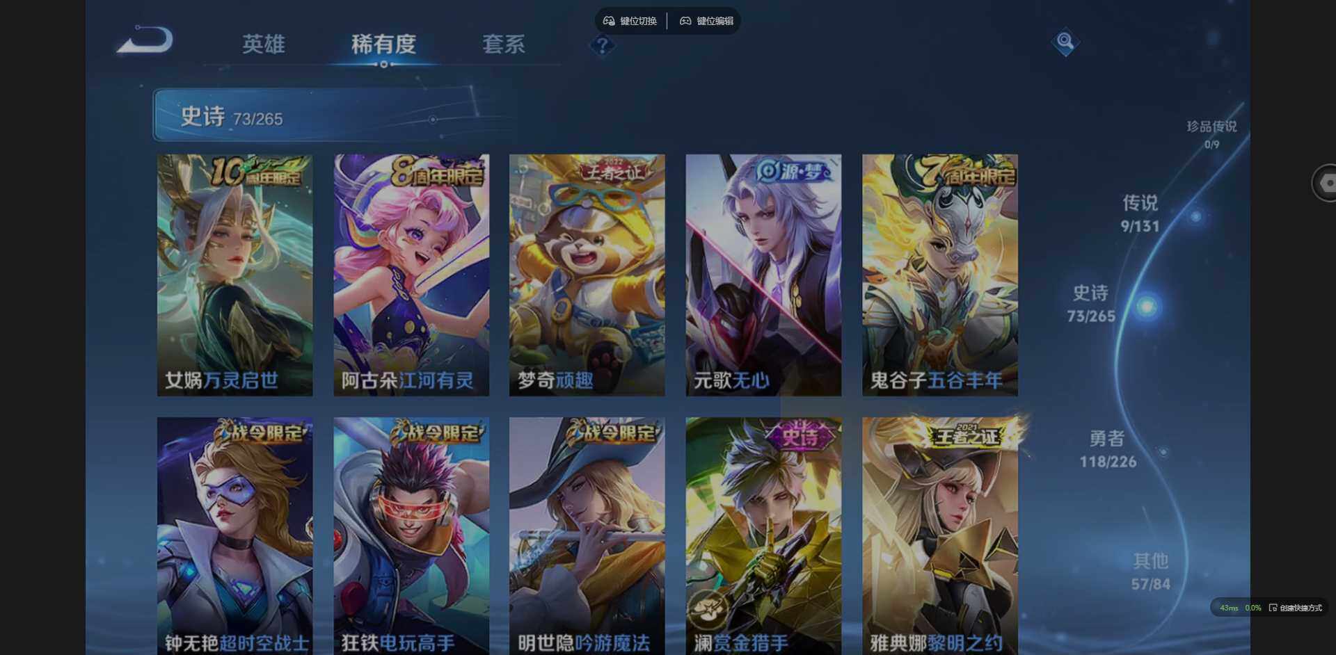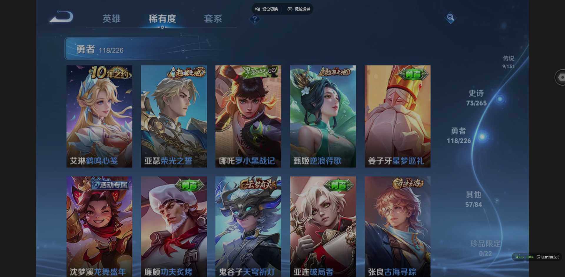 贵族等级: V7 英雄数: 126 皮肤数: 258 荣耀水晶: 全息碎影 星