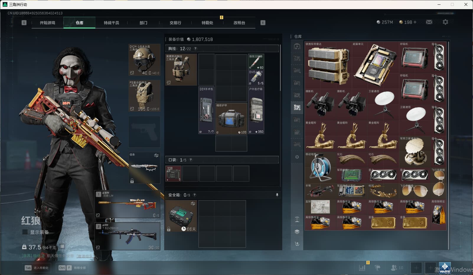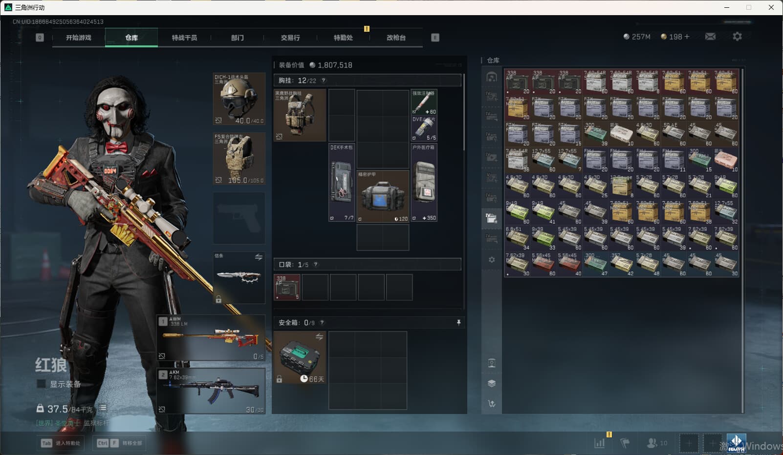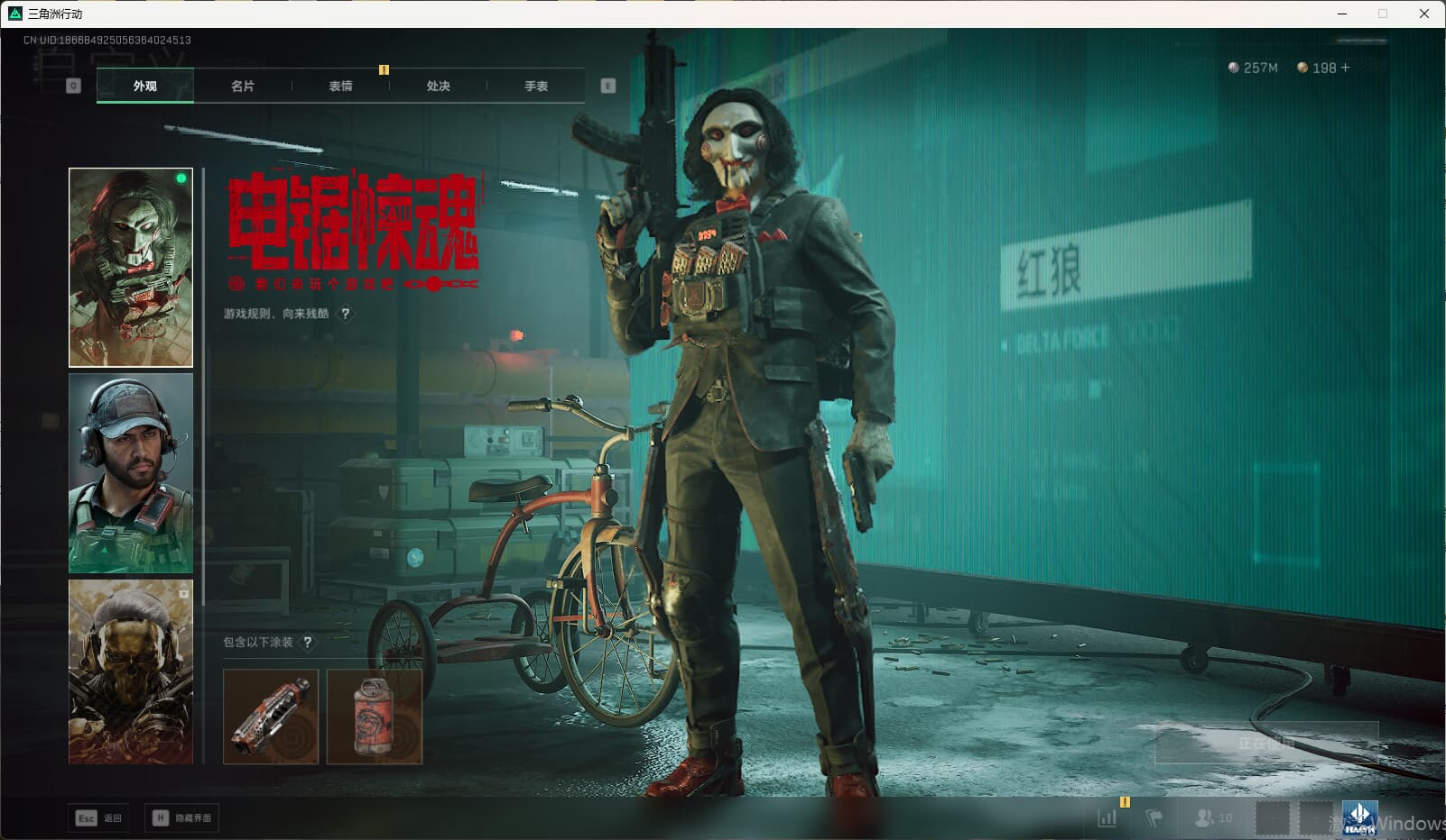 c8634/QQ区/总资产518M流动467M/哈夫币257M/满级体力/【红狼:电锯惊魂/无名-夜