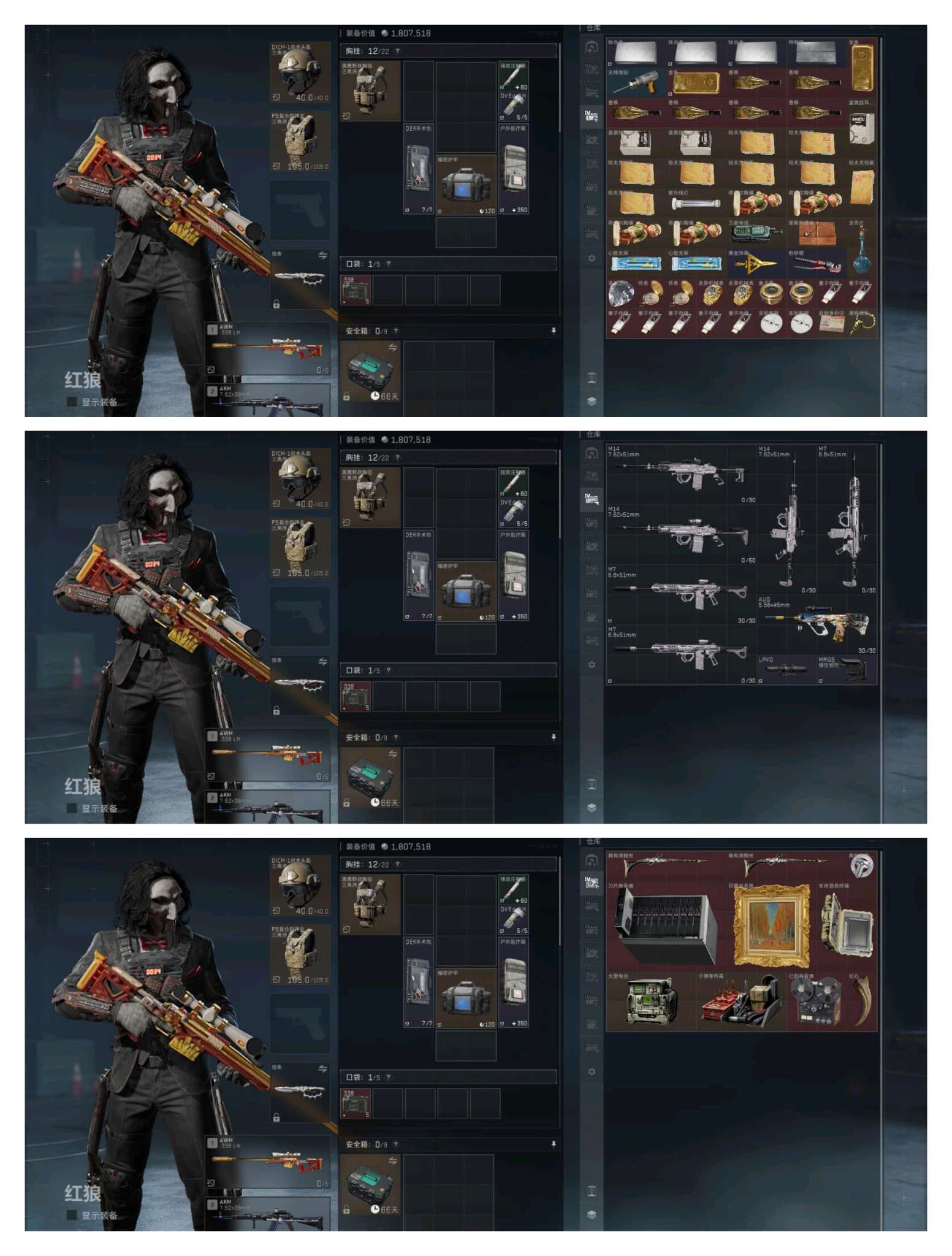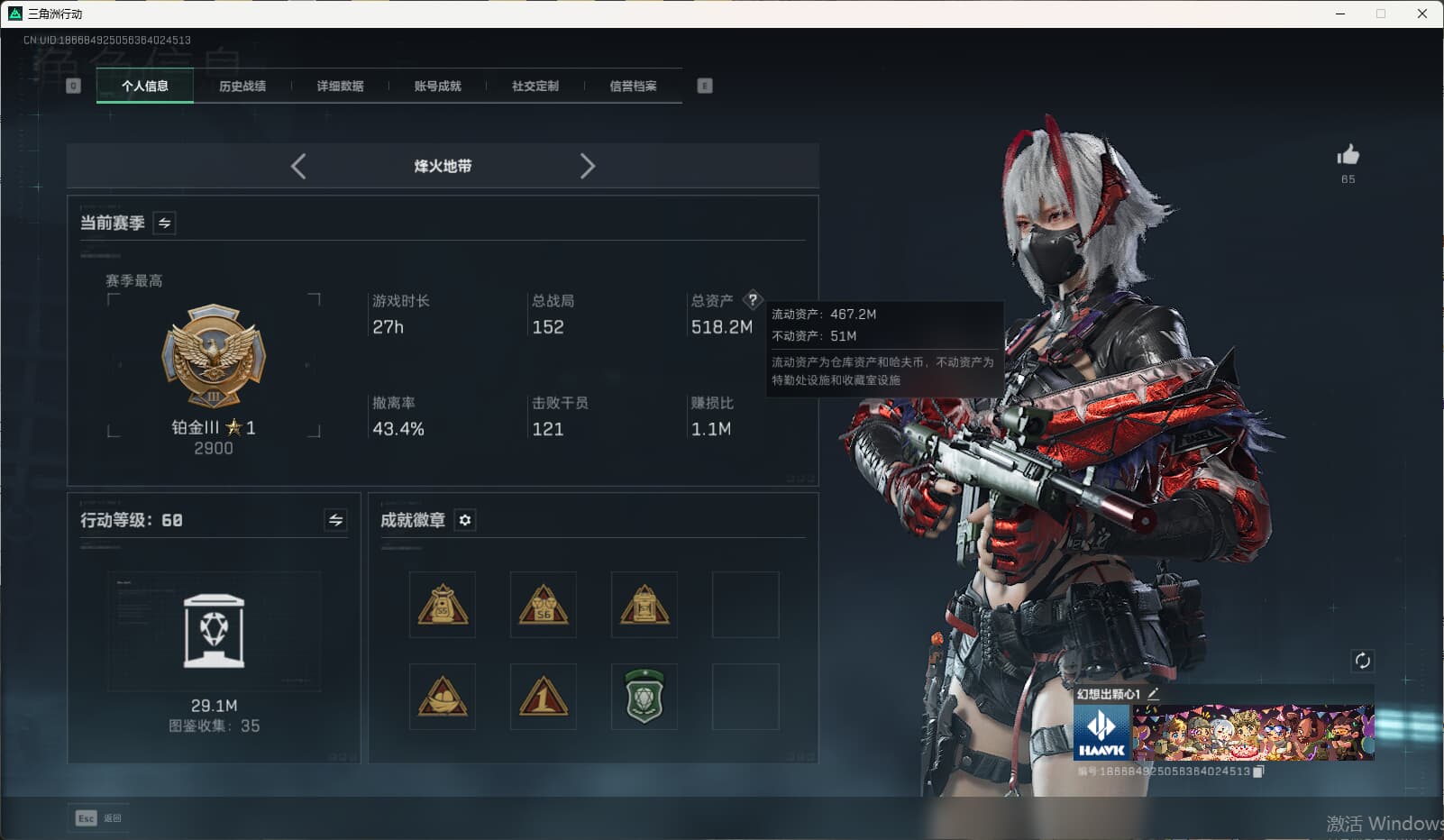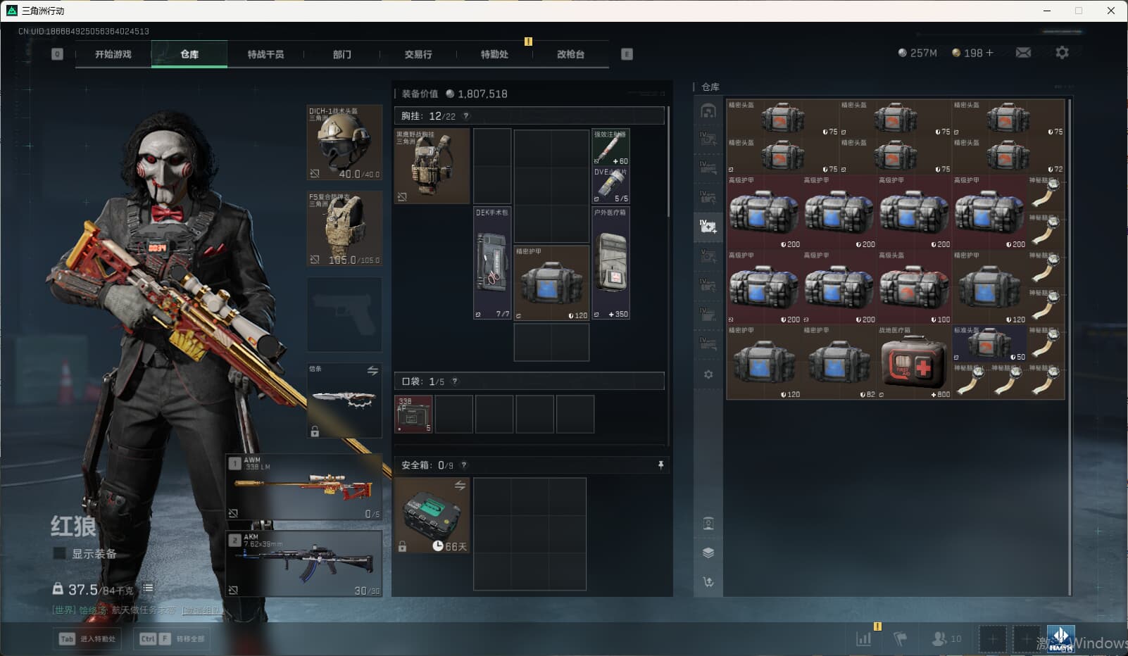 c8634/QQ区/总资产518M流动467M/哈夫币257M/满级体力/【红狼:电锯惊魂/无名-夜