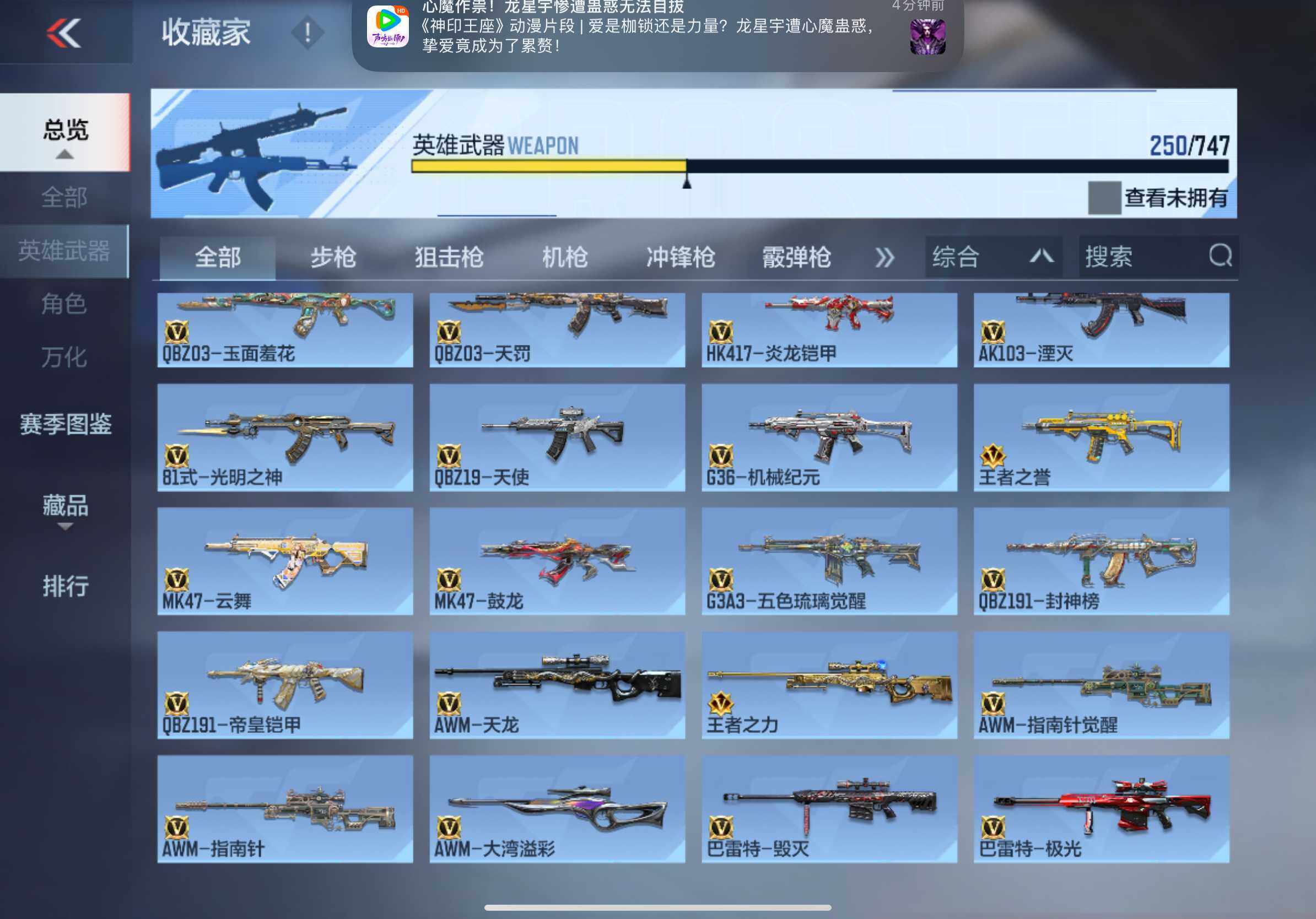 V8/1至尊/29王者/366英雄/王力+拉丝皮+现代战场/王心大套装+拉丝皮/M4雷霆王者+冰皮/王影/王誉/王狱+冰皮/王蝶/M12雷霆王者+冰皮/王霆/COP雷霆王者/王业+冰皮/雷霆王者之锋/王击/王竞手雷套装/王影闪光烟雾/王翼闪光烟雾/王圣闪光烟雾/雷霆王者闪光烟雾/AK奉先+无双/AK孟德+过载/AK策/M4游骑兵+紫魇/M200幻神/TAC慈/CZS2仲康/M12天公/VEPR本