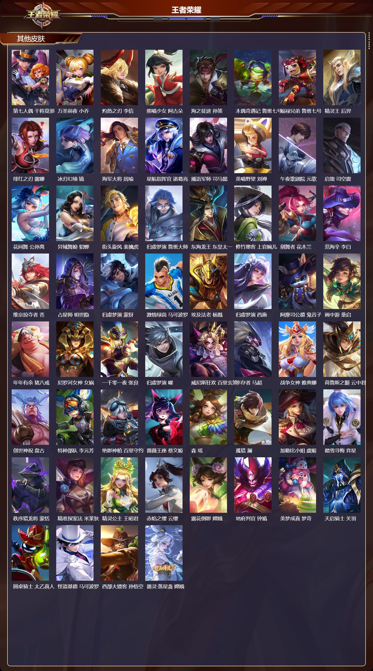 安卓QQ/至圣王者/339皮肤/127英雄/3典藏/0珍品无双/1无双/2珍品传说/22传说/98史