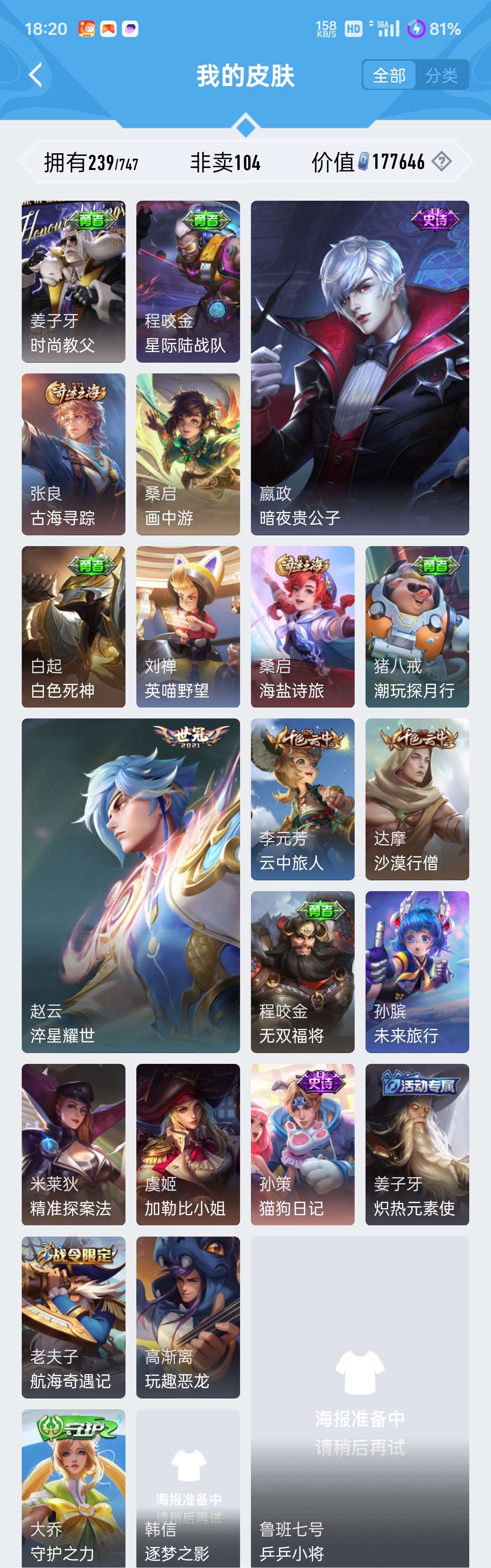 王魄拉丝皮 t0太史慈 三防角色 星象cop 东西很多 几乎都在图上 还有其他的也可以找我拿 包赔可