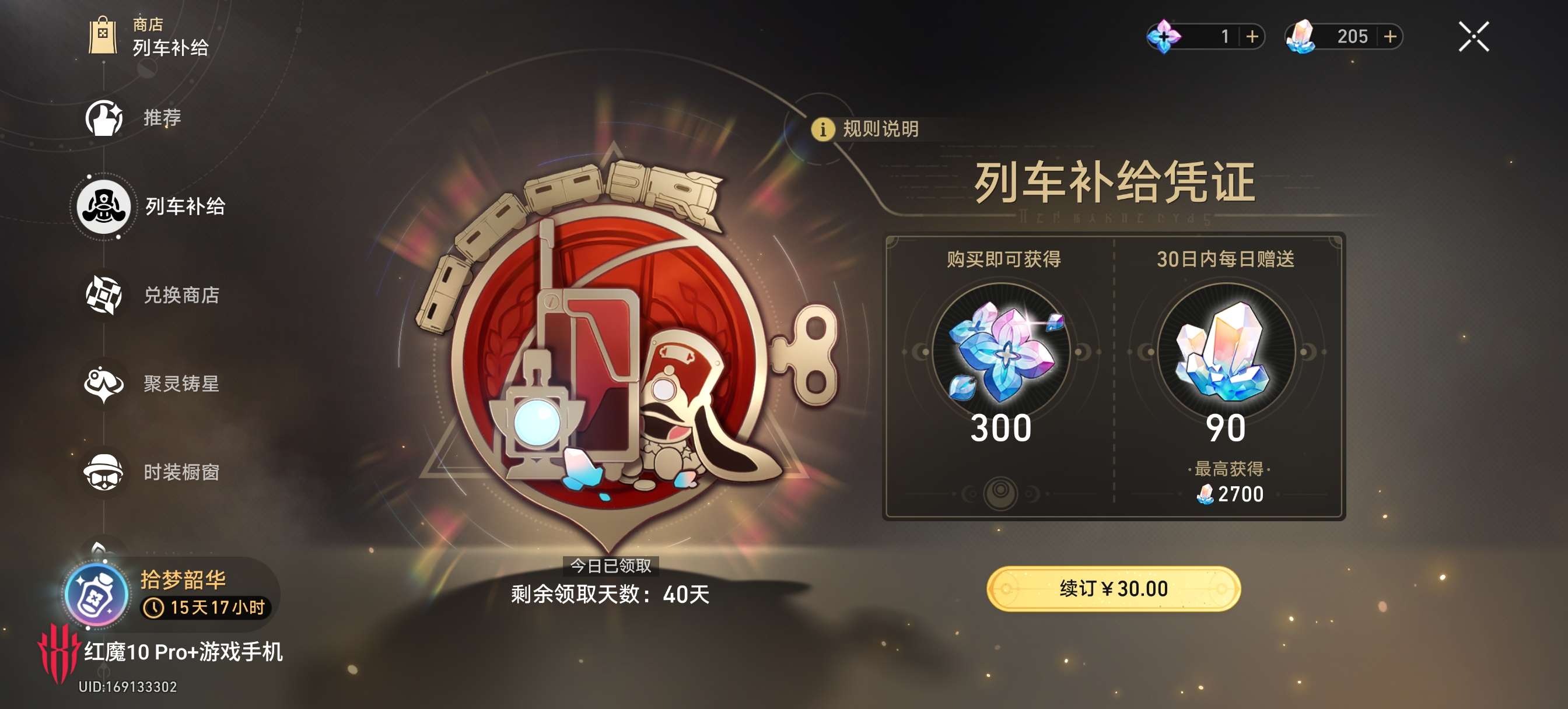大月卡已充,昔涟皮肤已买