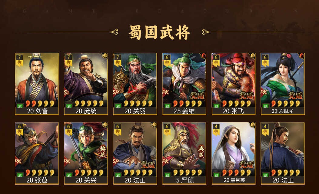 蜀国五星武将: