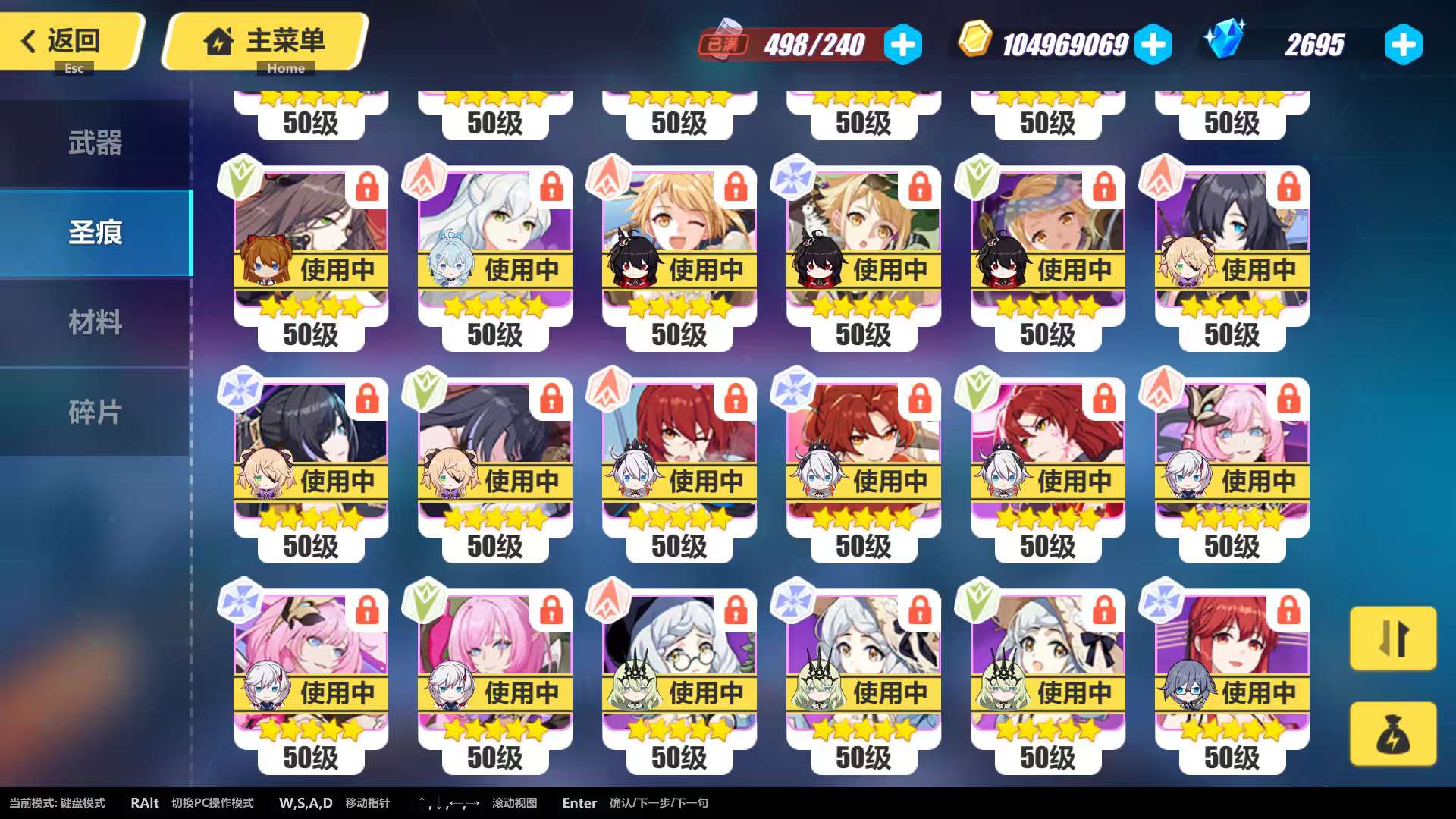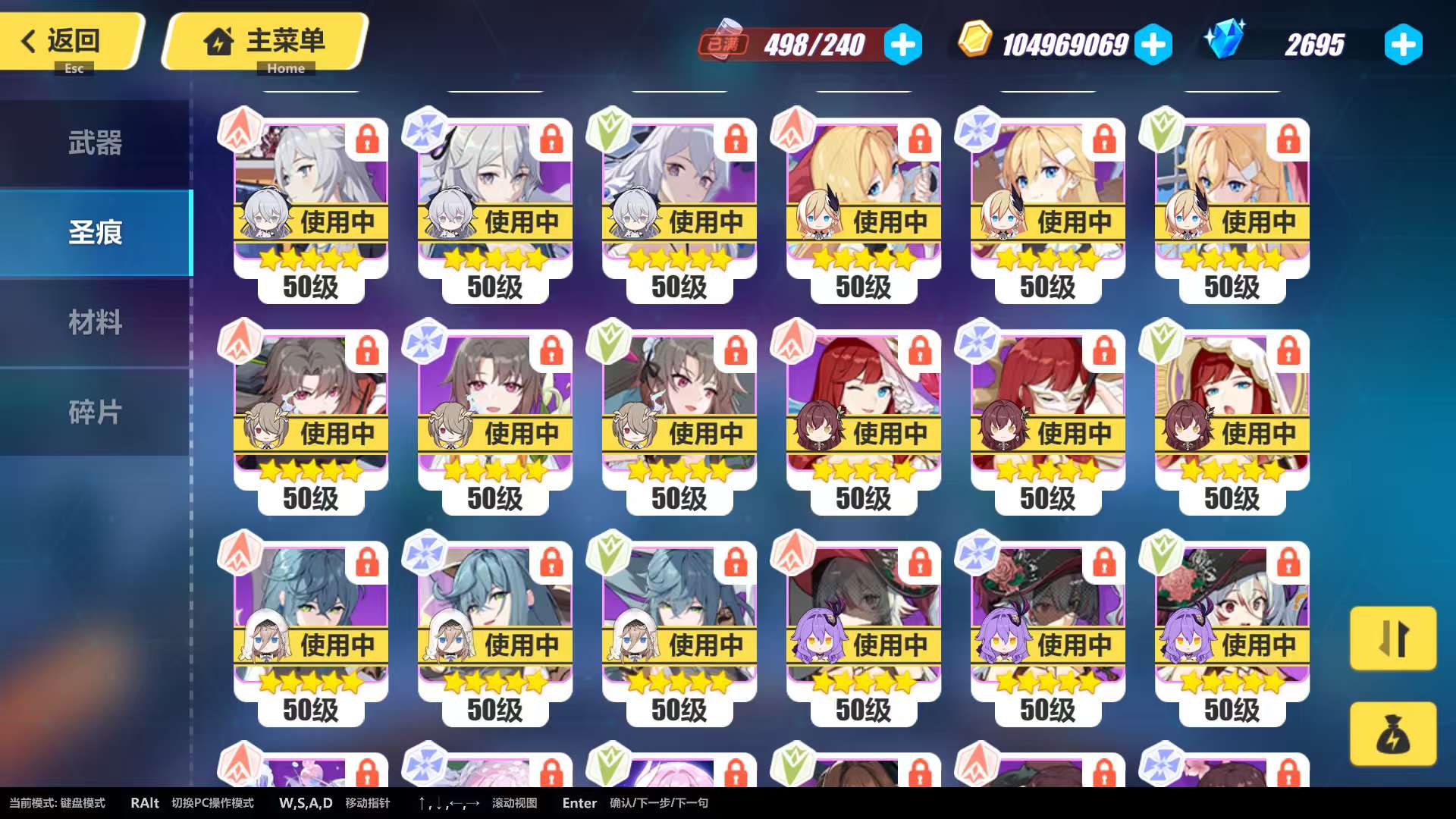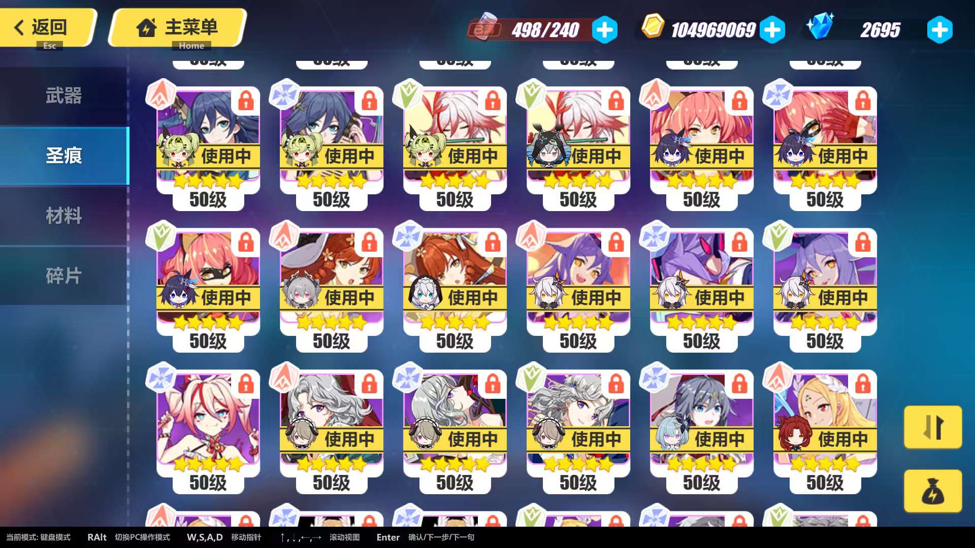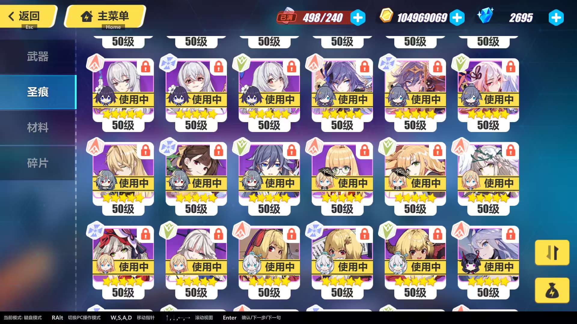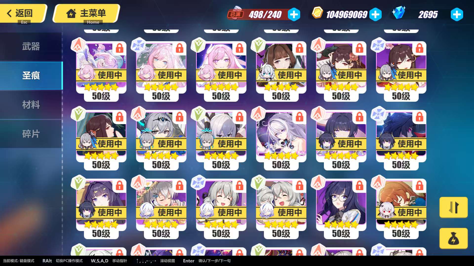 崩坏3自玩号,最近没时间,就差几个角色就全角色了,体系基本都已经成形且角色毕业