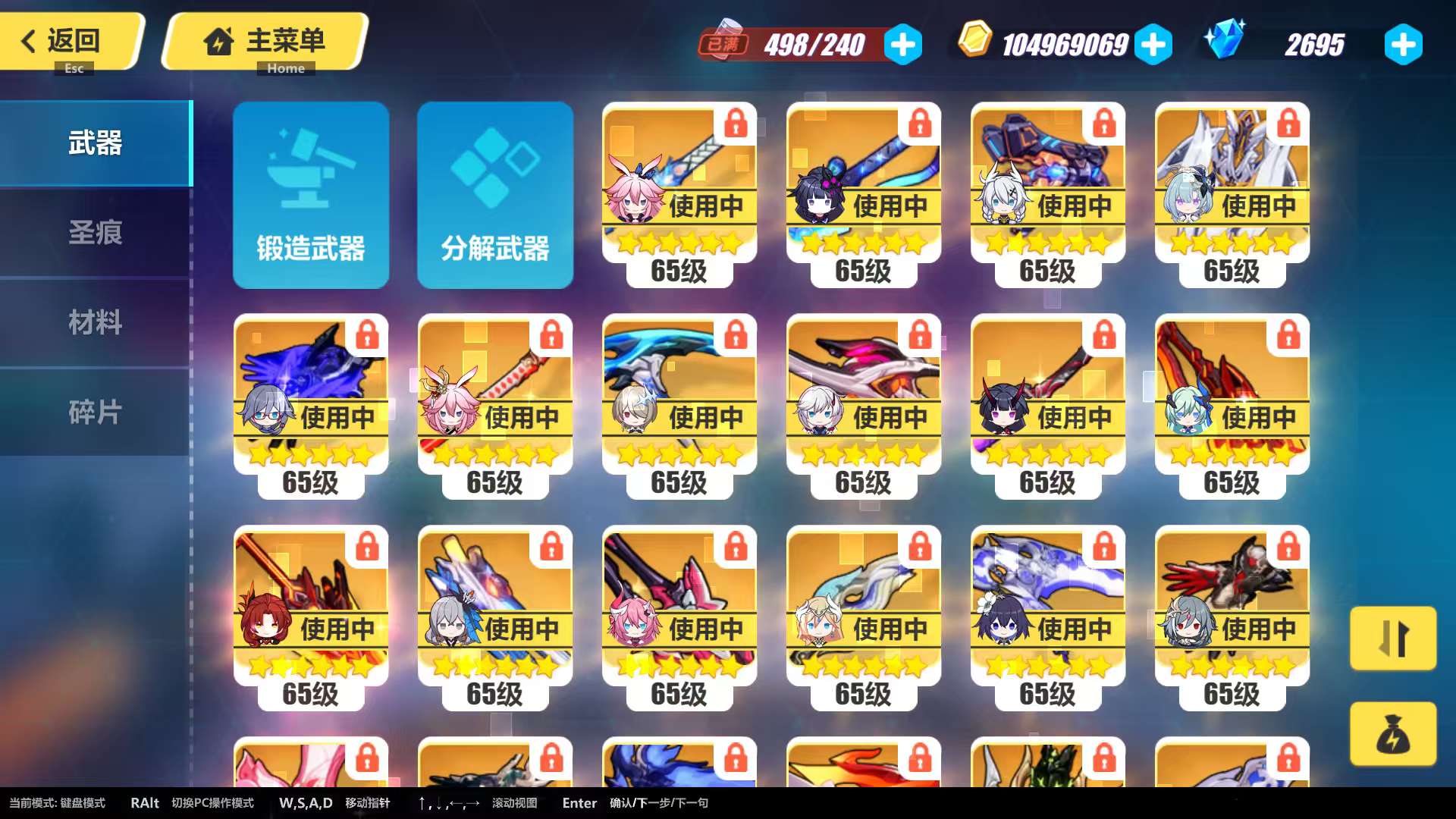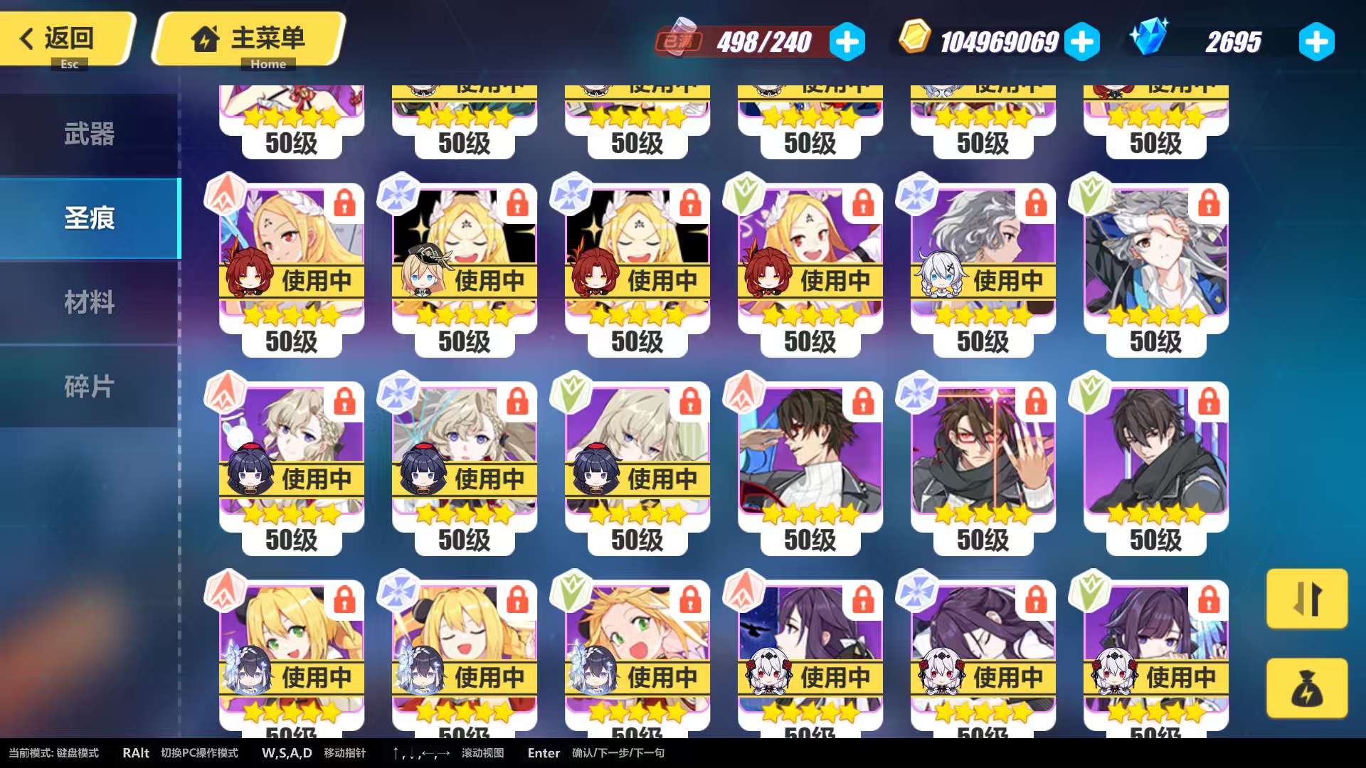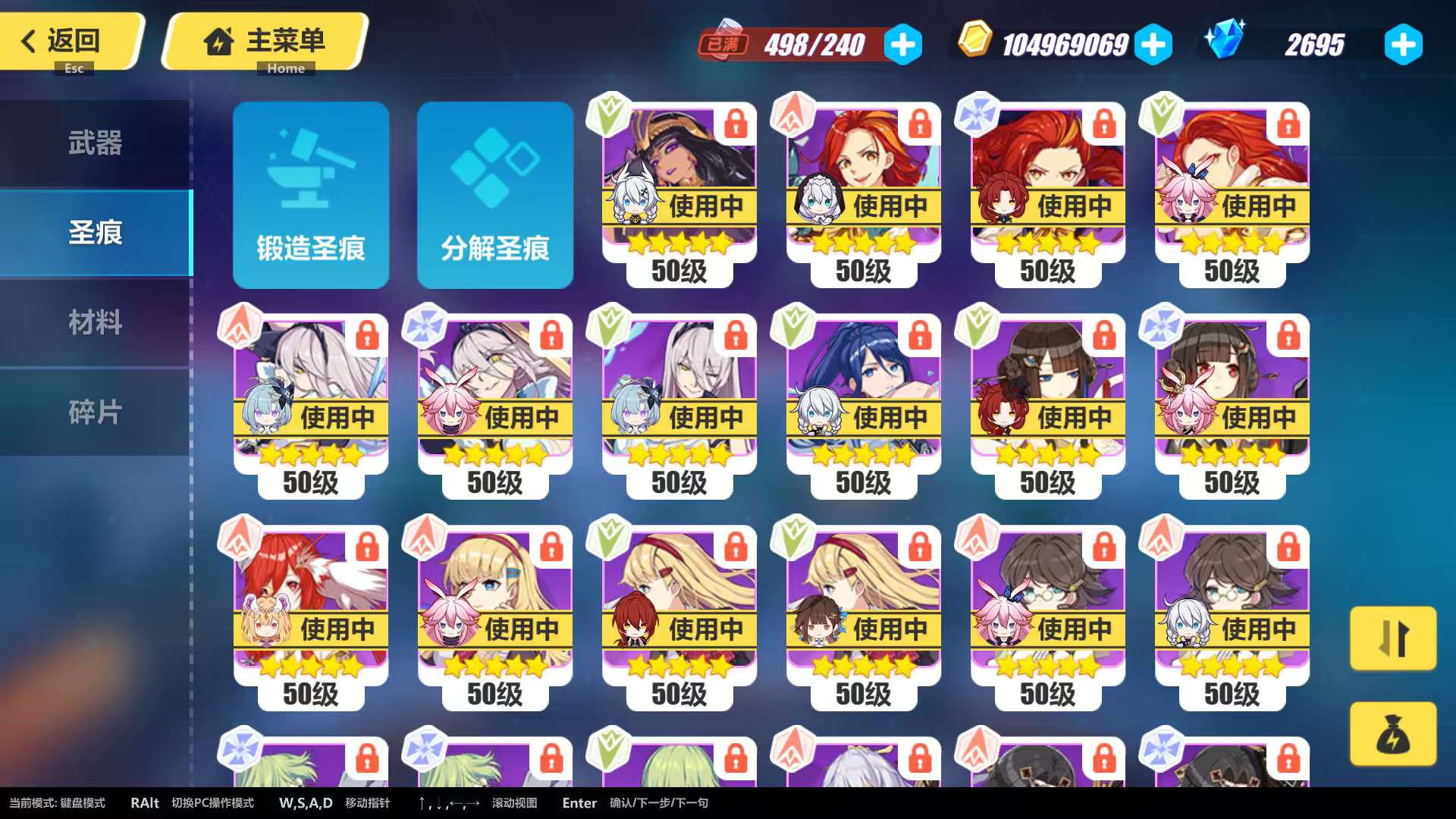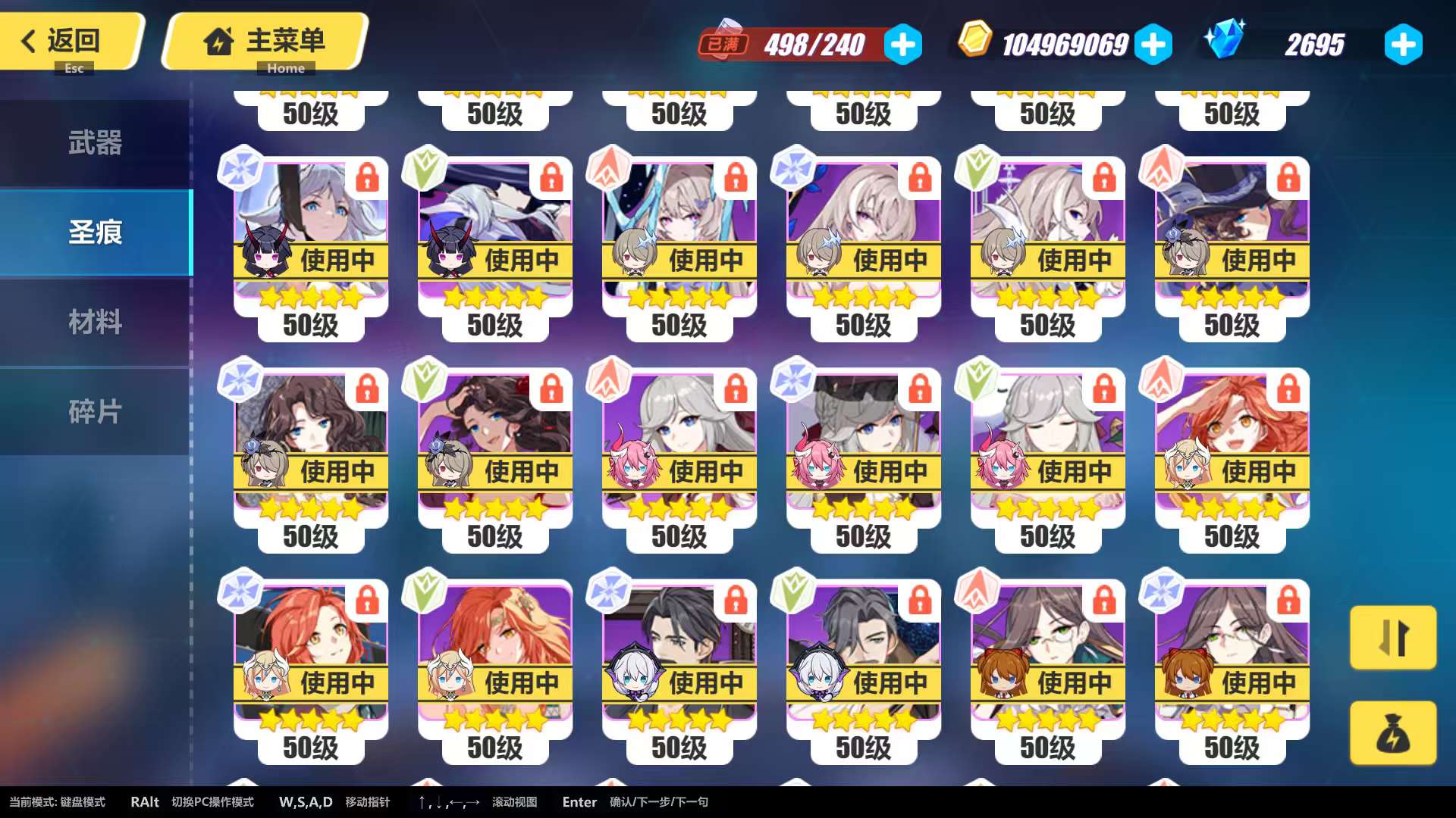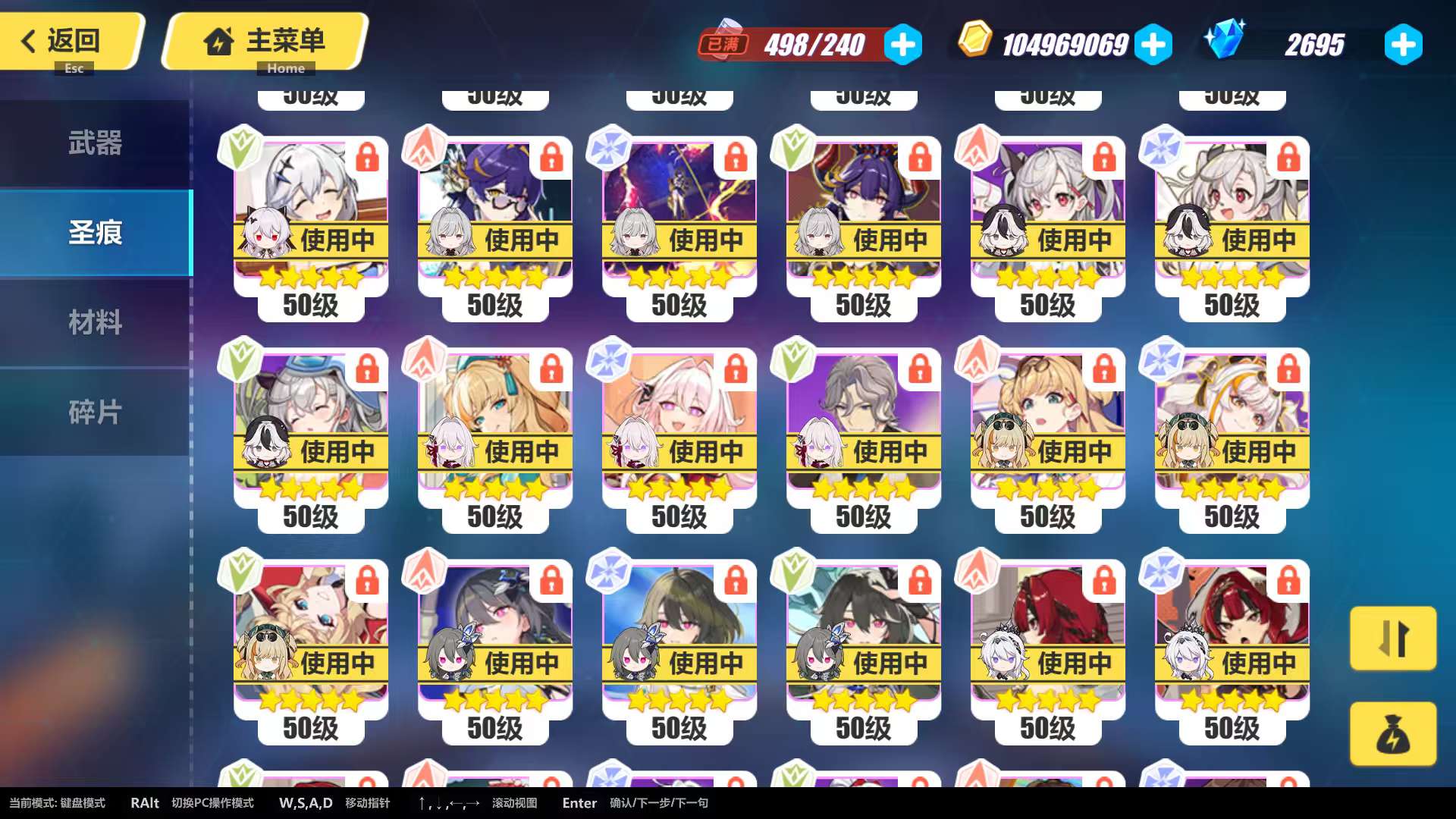 崩坏3自玩号,最近没时间,就差几个角色就全角色了,体系基本都已经成形且角色毕业