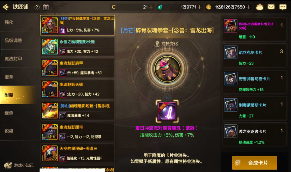 刚转的花花,换个武器整理一下抗魔会更高!至尊武器宝珠,至尊勋章加宝珠,至尊公会加夜叉2%卡