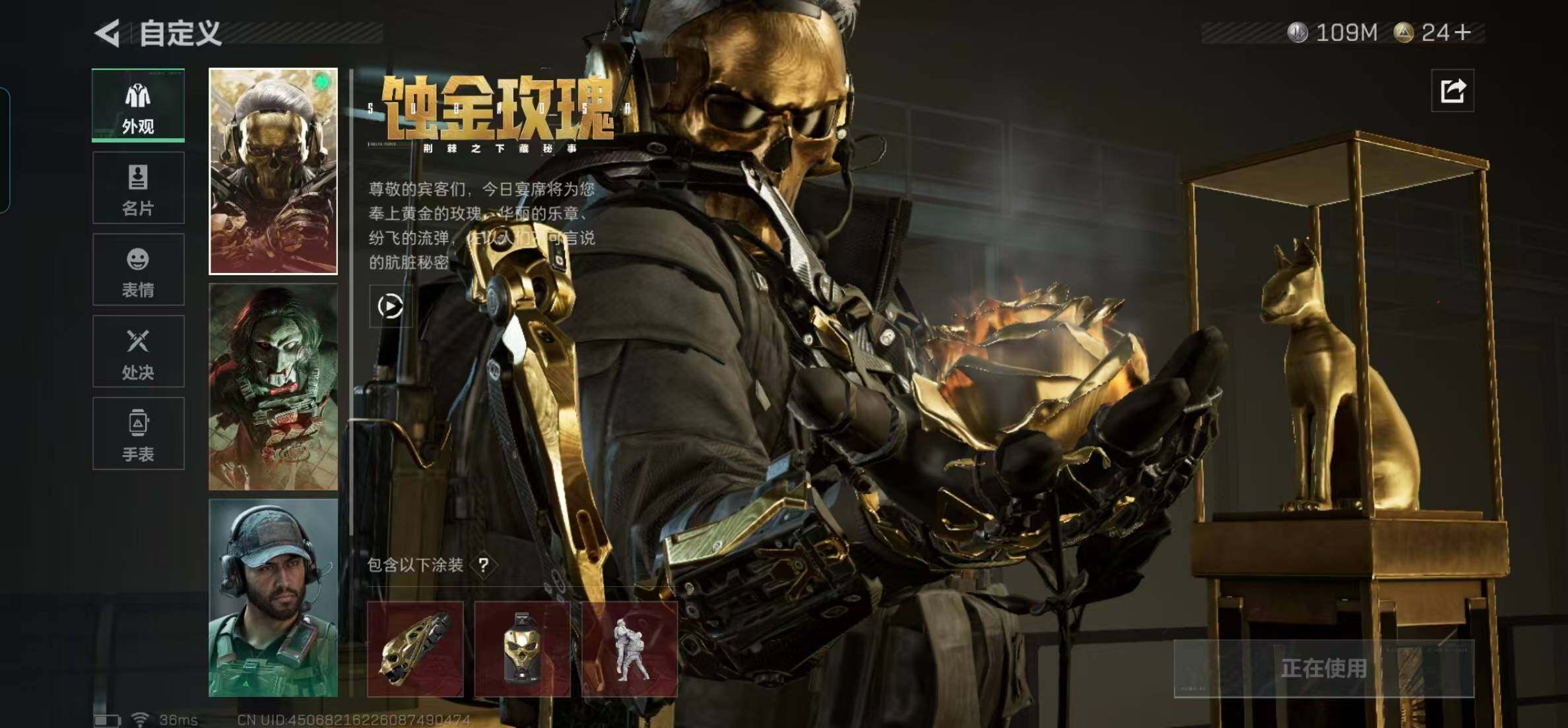 【干员外观】:红狼-蚀金玫瑰,无名-夜鹰,深蓝-不破誓约,红狼-电锯惊魂