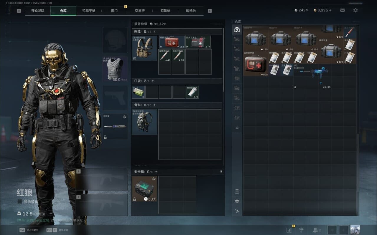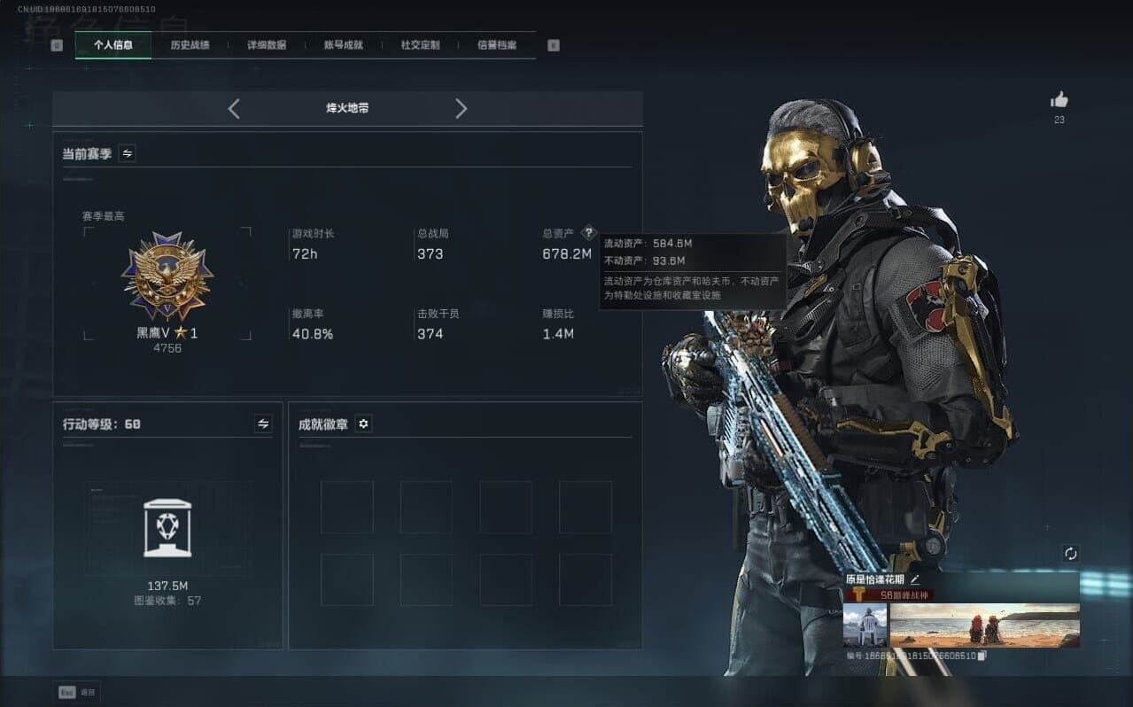 H9245/区服QQ/哈弗币2.4亿/总资产678M/行动等级60/战场等级30/【特战干员】/红狼