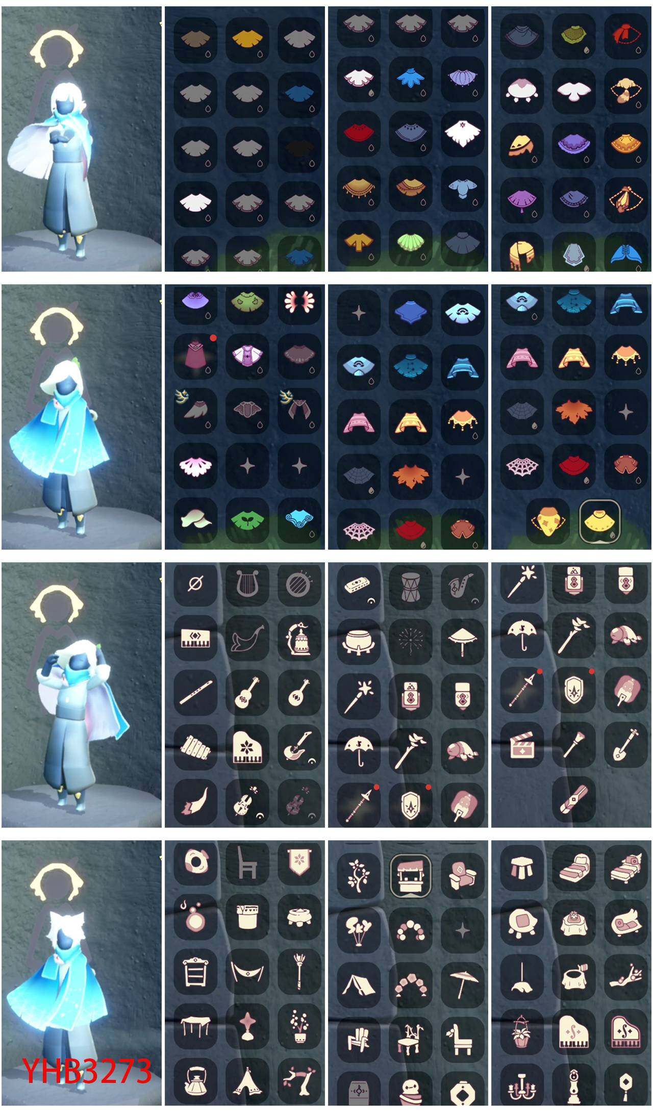 稀有礼包:兔子鞋 巫师帽 九色鹿鹿角 彩虹耳机 线框斗篷 透明蛛丝斗篷 蛛丝斗篷 小黄鸭斗篷