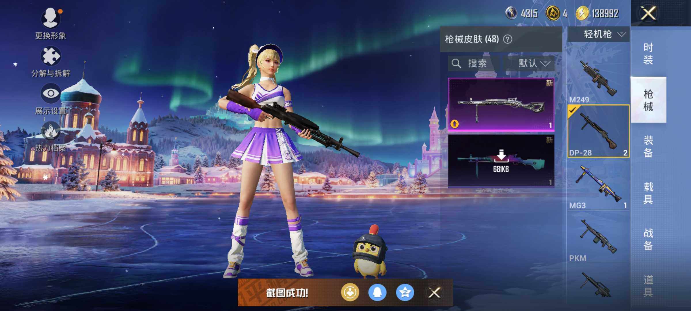【粉色枪皮等级】:Kar98K-巳巳如意(四级),DP-28-豹影疾电(五级)