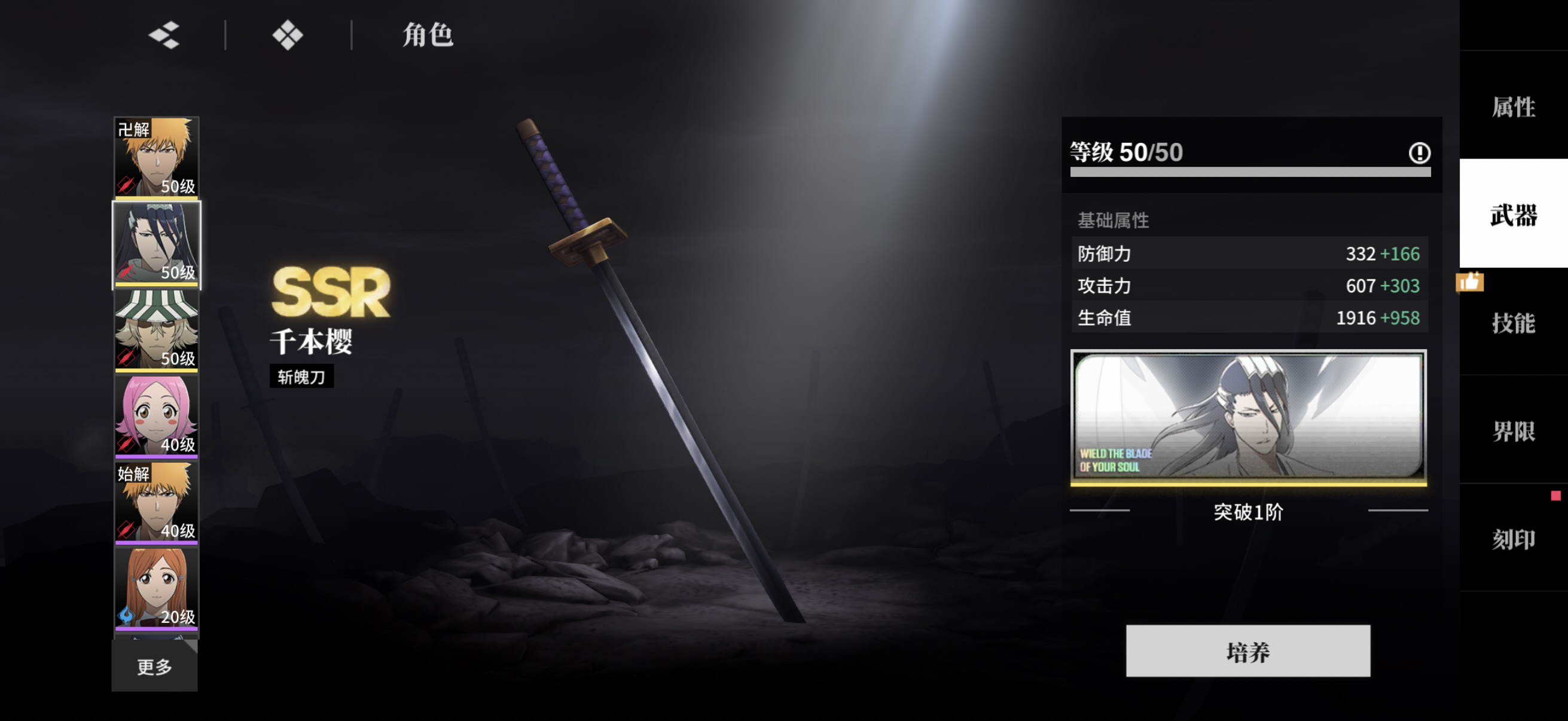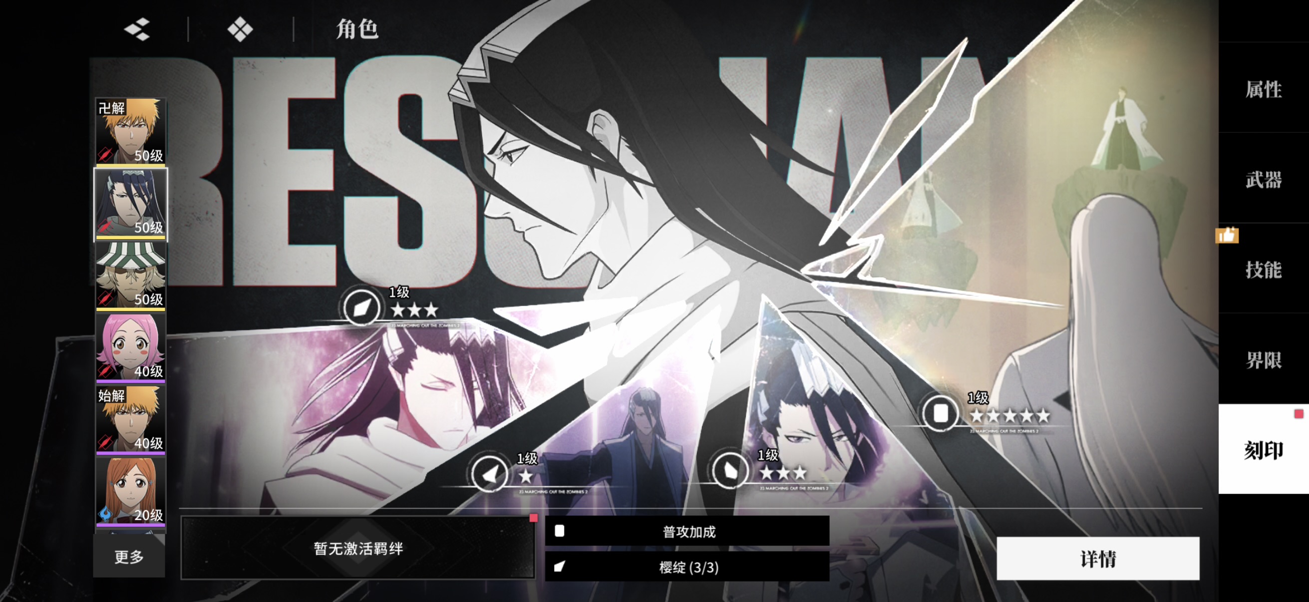 卐解一户白哉店长(一命),一户白哉有专武。其他sr若干