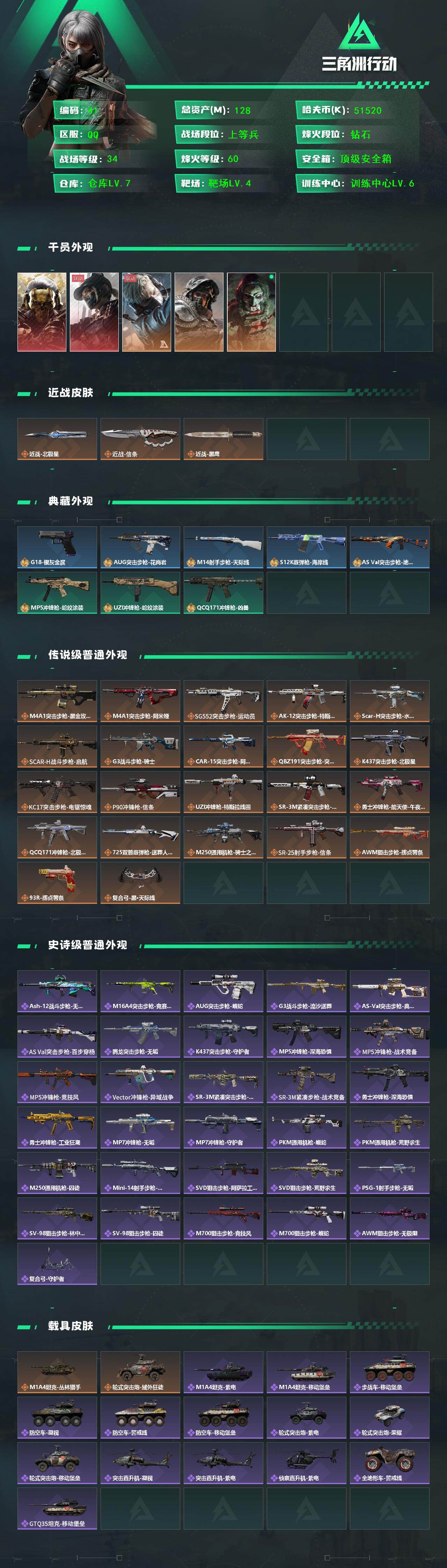 51520k哈伏币-114m流动资产-60烽火等级-钻石-34战场等级-上等兵