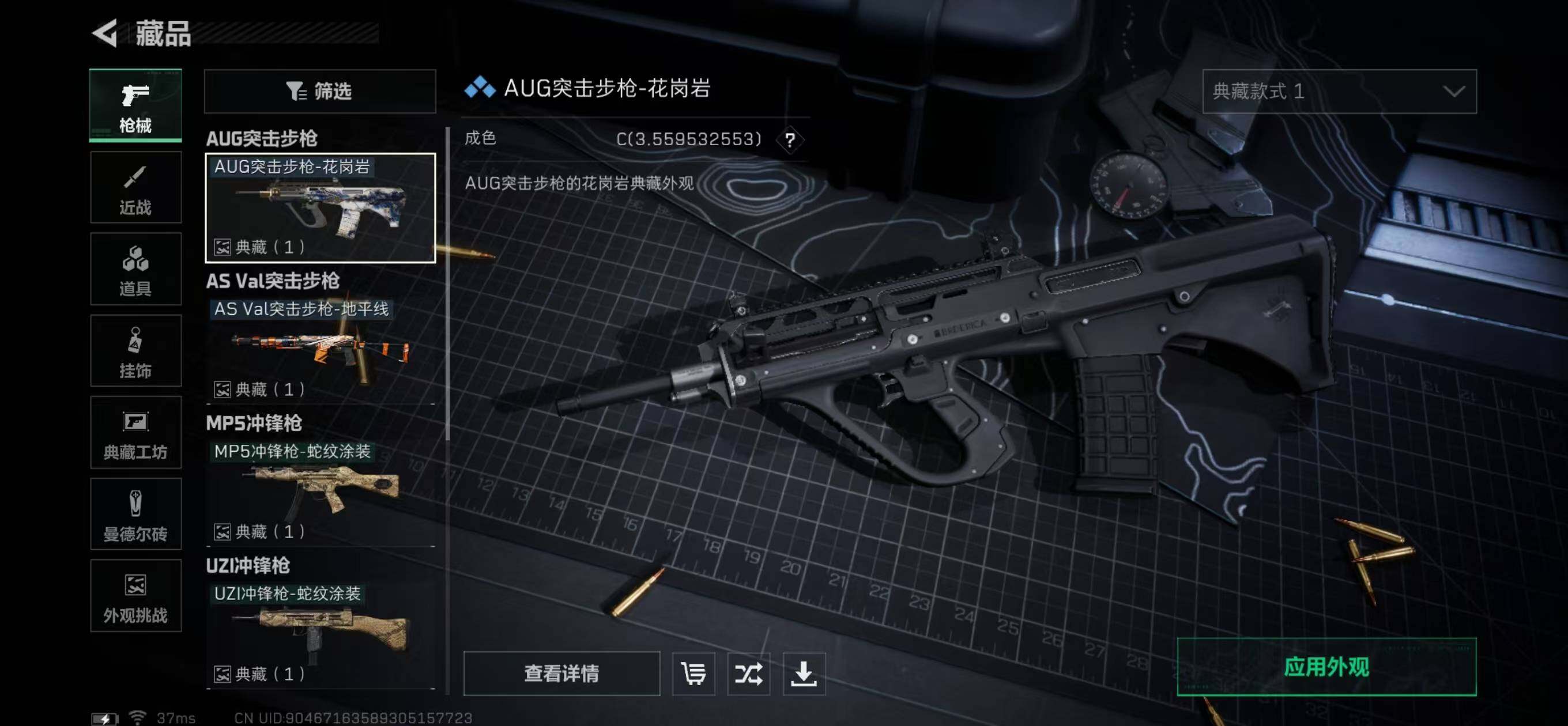 【典藏外观】:G18-银灰金属,AUG突击步枪-花岗岩,M14射手步枪-天际线,S12K霰弹枪-海岸线,AS Val突击步枪-地平线,MP5冲锋枪