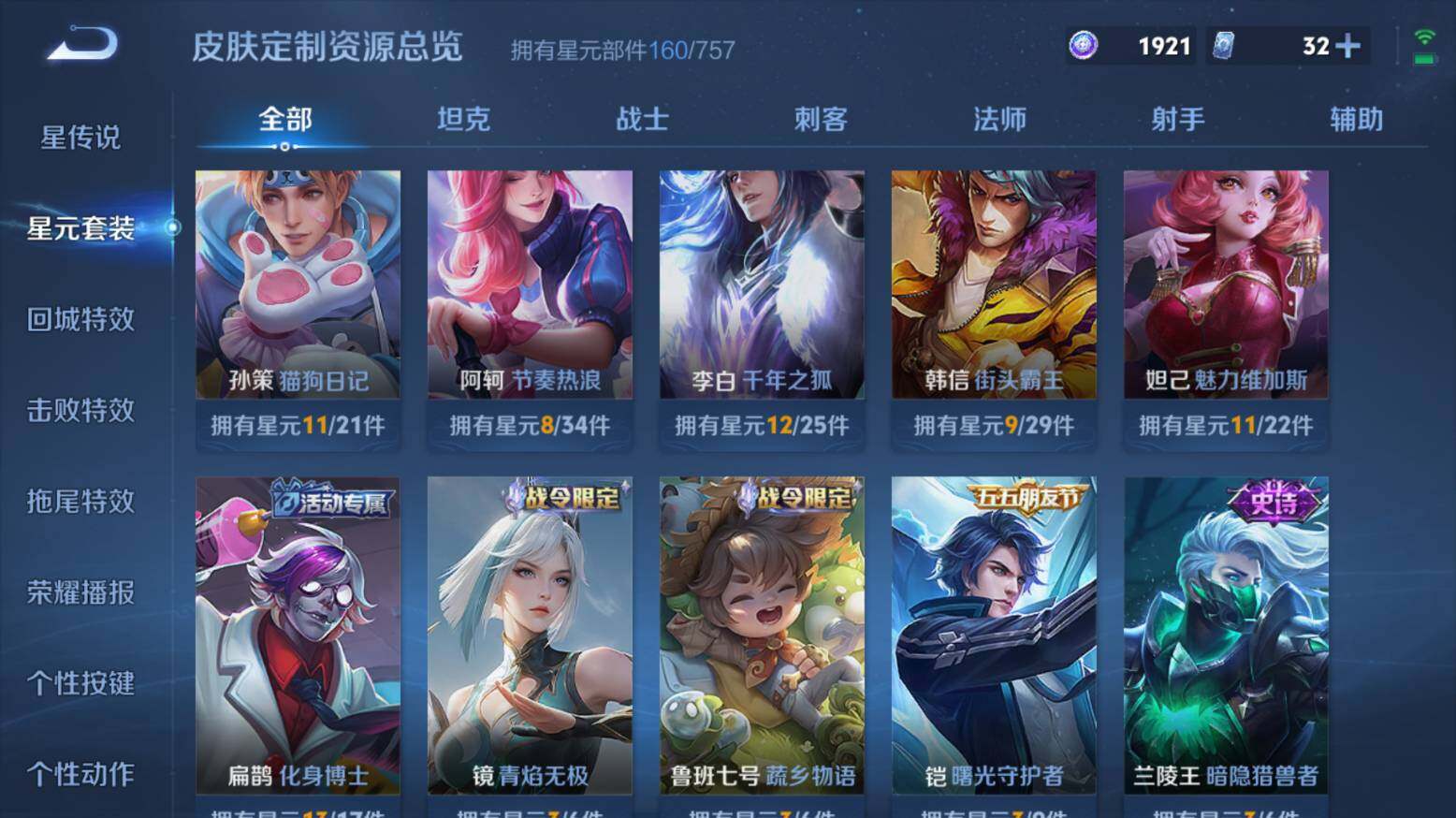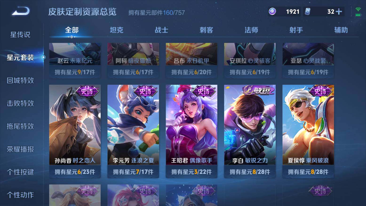 安卓Q-V7 -126英雄-215皮肤-1典藏皮肤-1珍品传说-2传说-59史诗