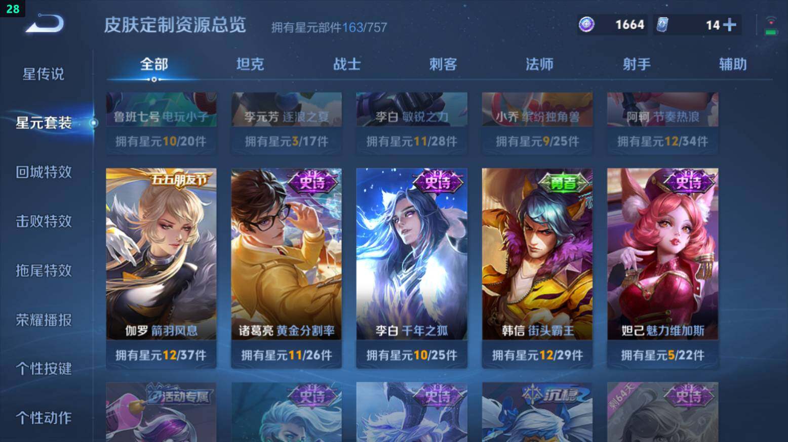 苹果Q-V7-261皮肤-1典藏皮肤-9传说-76史诗-5按键-2星元【全皮