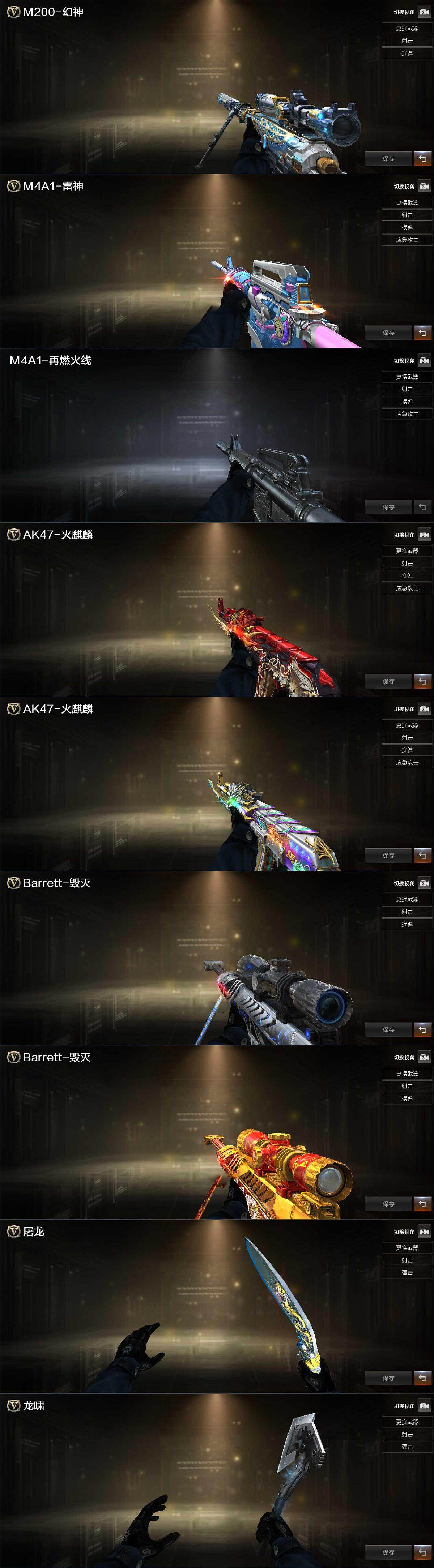 【王者炫金武器】:王者青龙,王者雷影,炫金火麒麟,炫金千变,炫金雷神