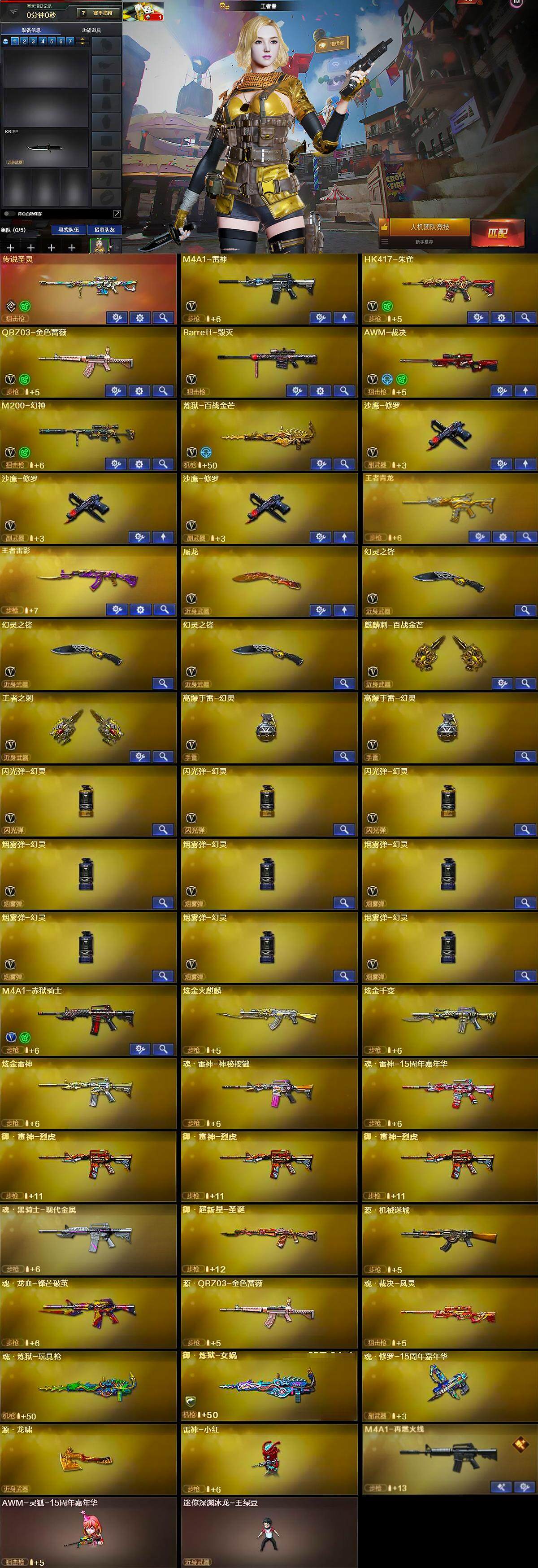 【热门武器】:传说圣灵,QBZ03-金色蔷薇,HK417-朱雀,M200-幻神,雷神-小红,沙鹰-修罗*3