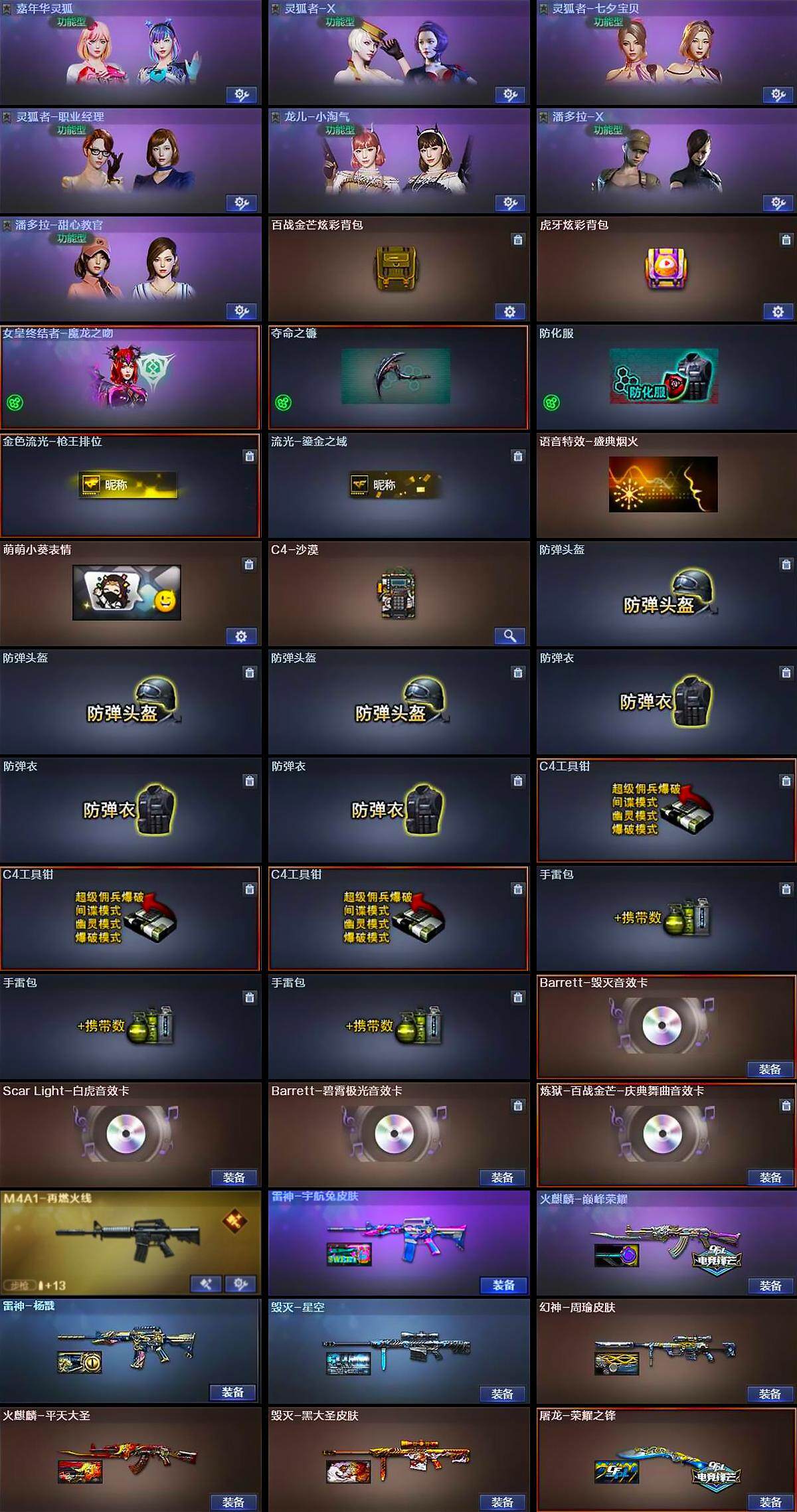 【音效卡】:Barrett-毁灭音效卡,Scar Light-白虎音效卡,Barrett-碧霄极光音效卡,炼狱-百战金芒-庆典舞曲音效卡