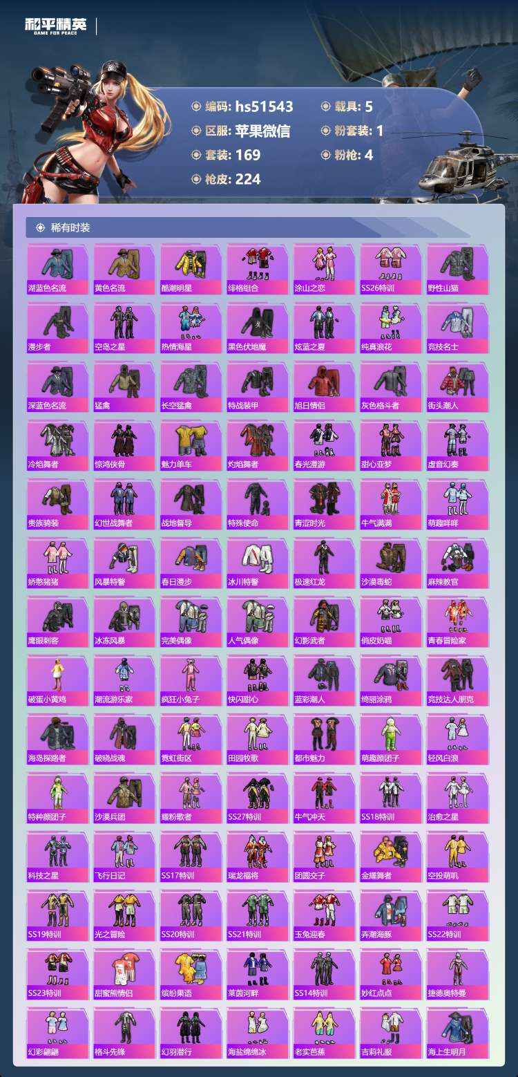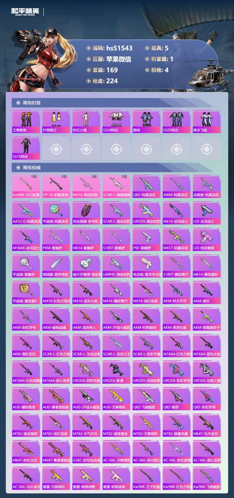 苹果v-14王牌印记-1粉装-4特效枪-5载具-169套装-22