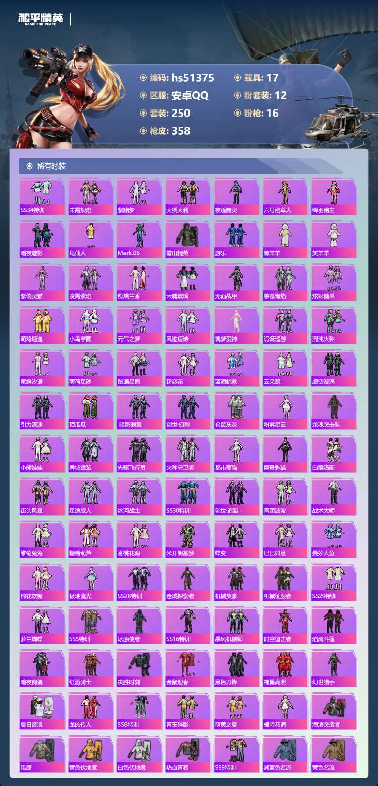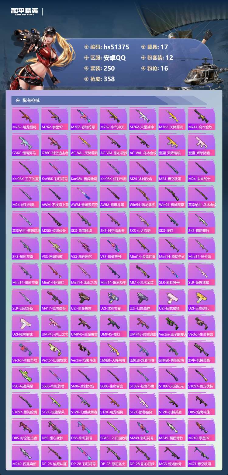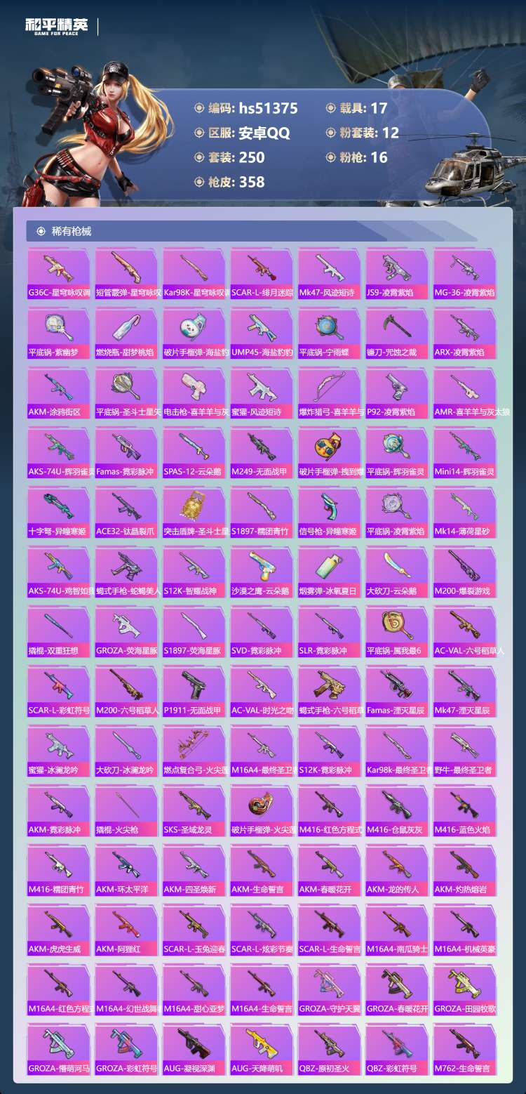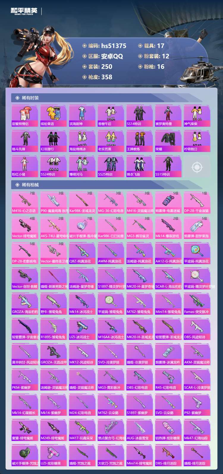 安卓手Q-21王牌印记-3红装-12粉装-16特效枪-17载具