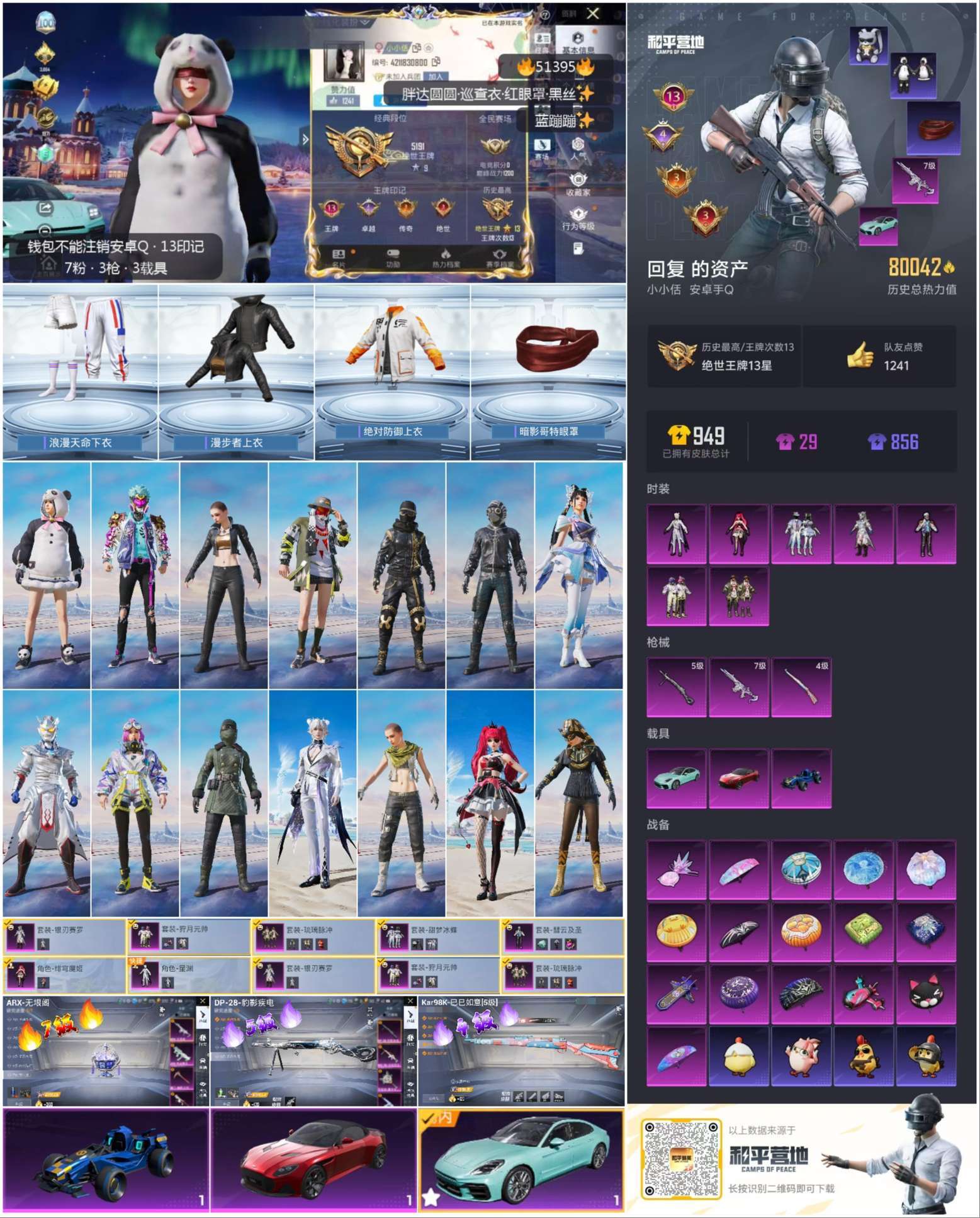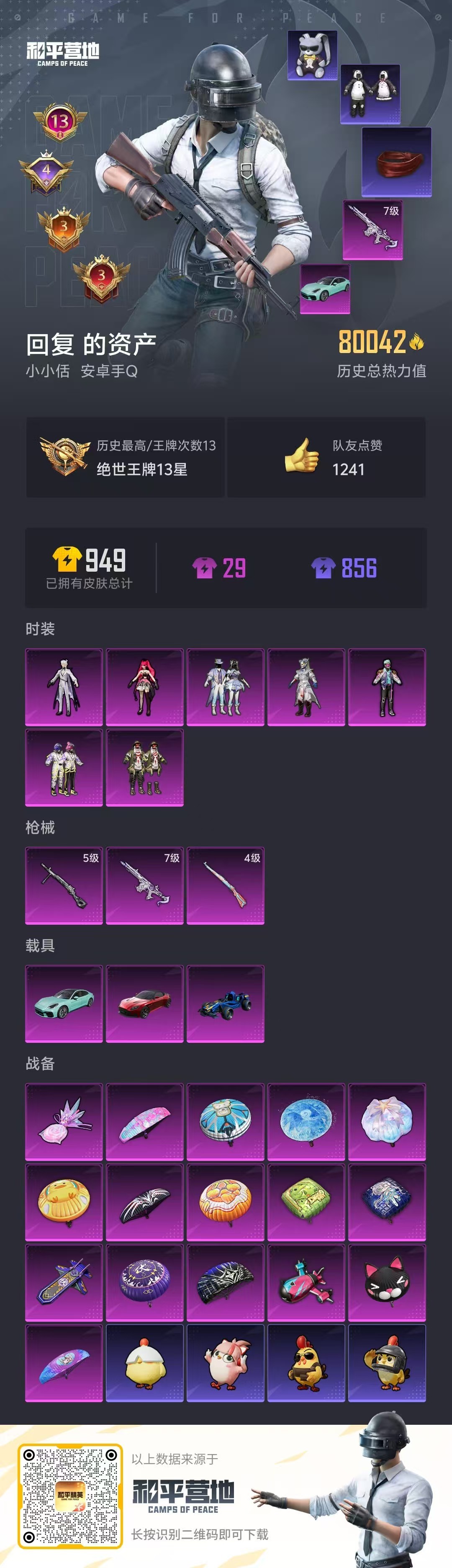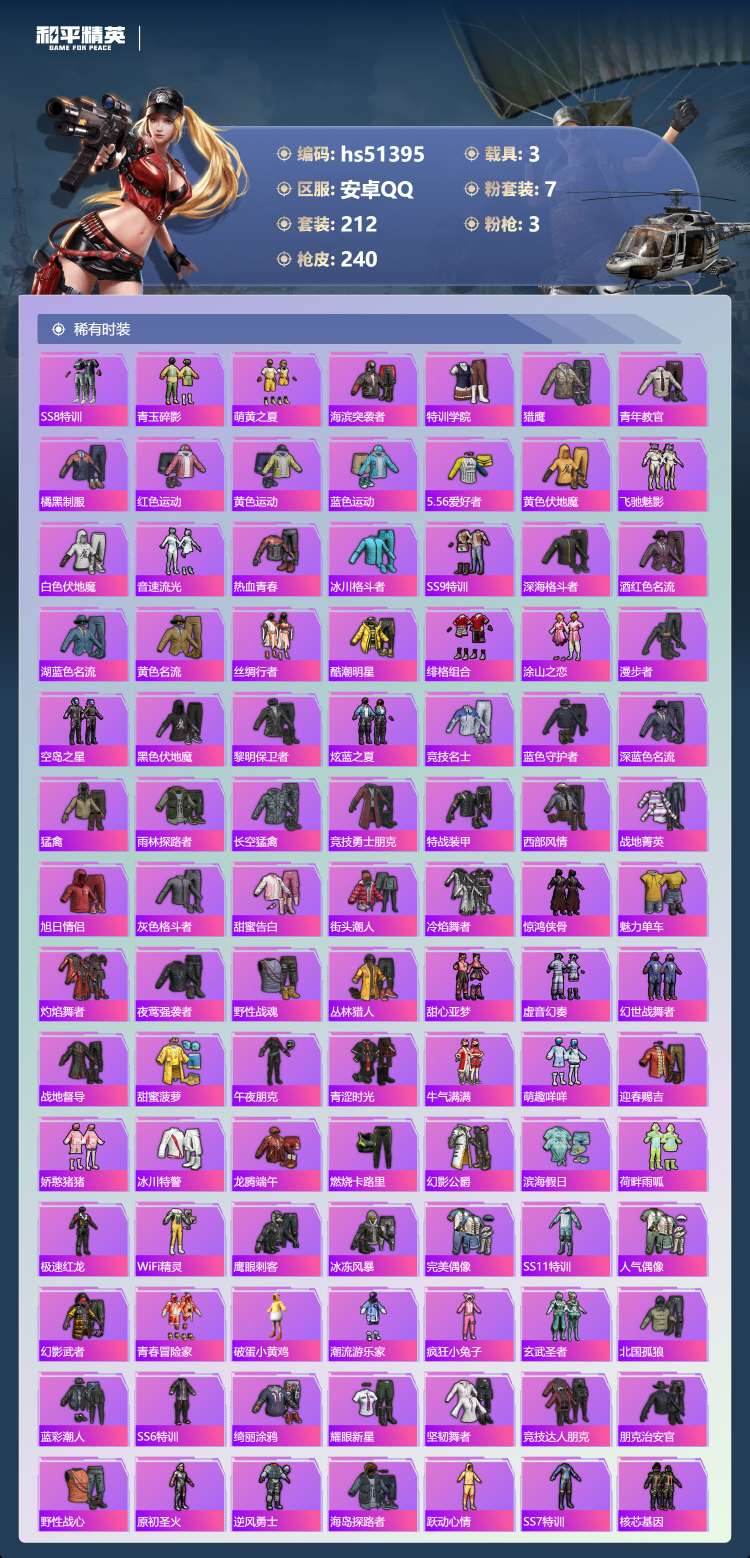 安卓手Q-13王牌印记-7粉装-3特效枪-3载具-80042热力值-212套装-24