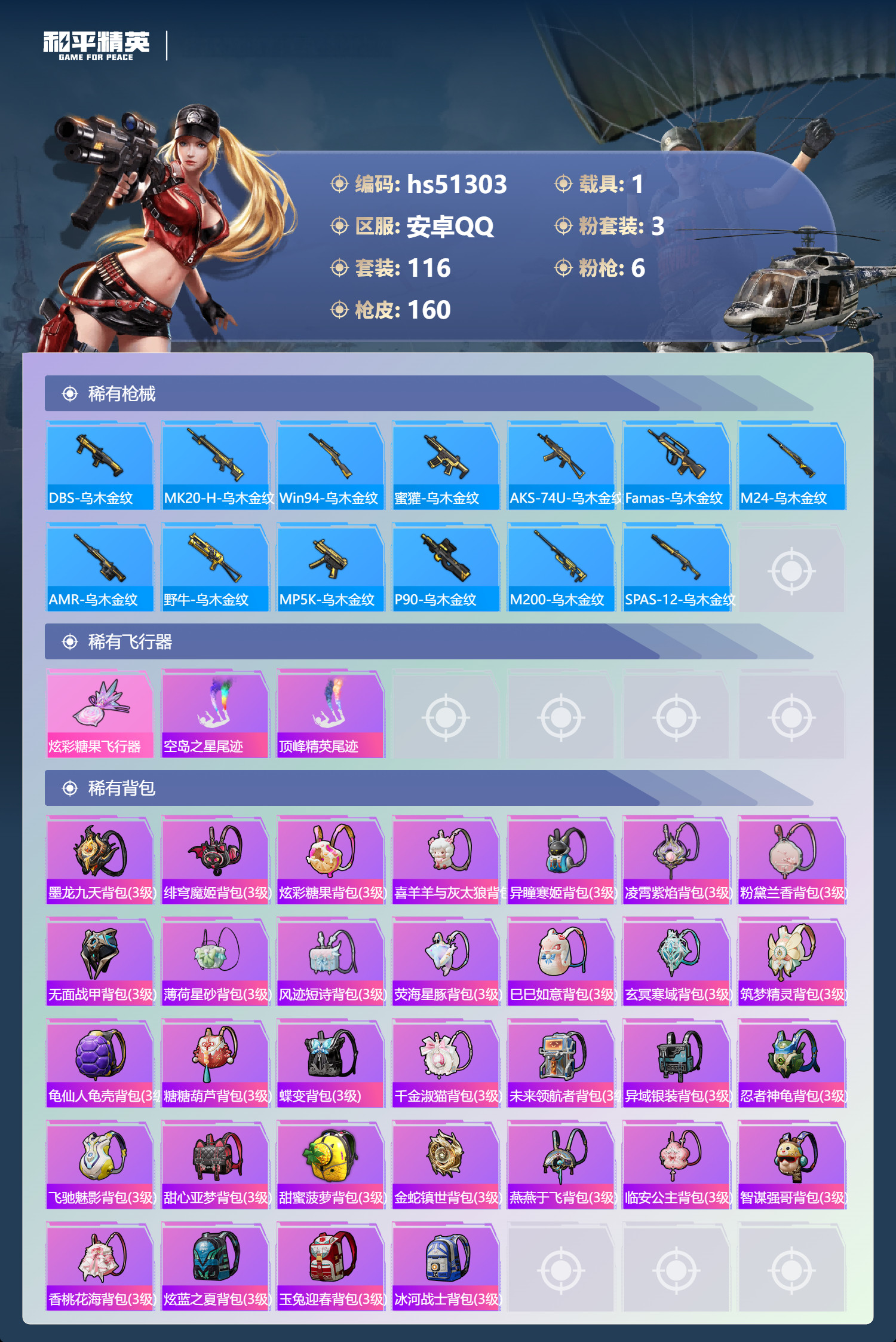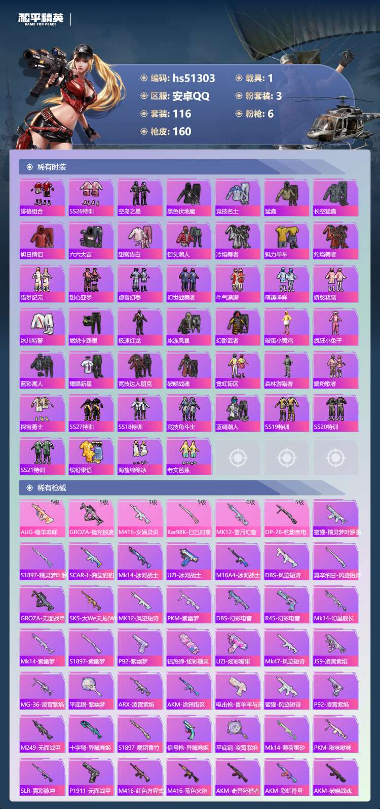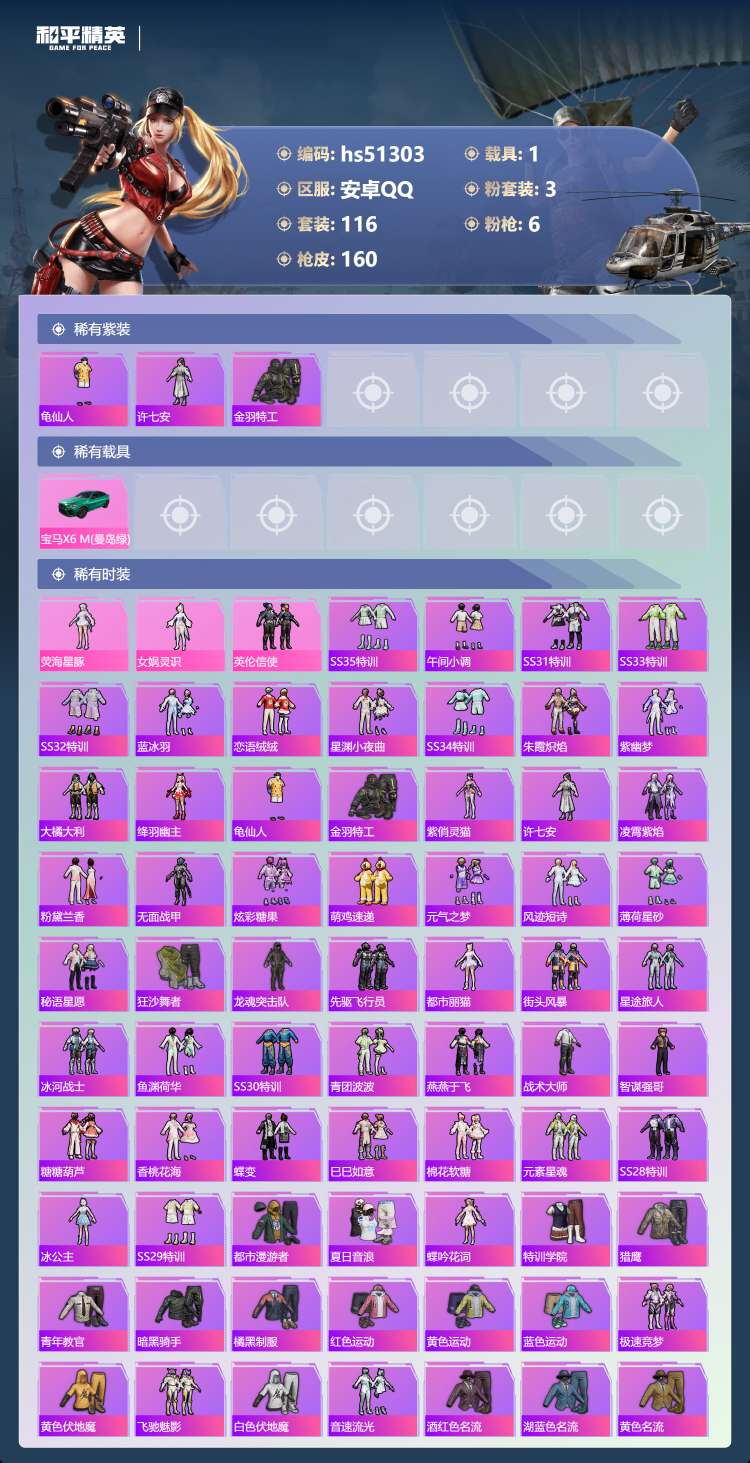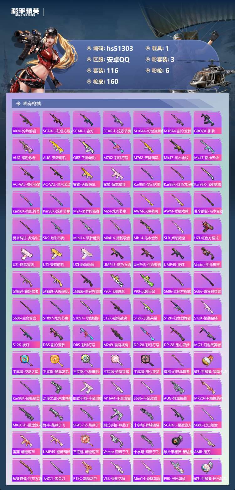 安卓手Q-8王牌印记-3粉装-6特效枪-1载具-116套装-160