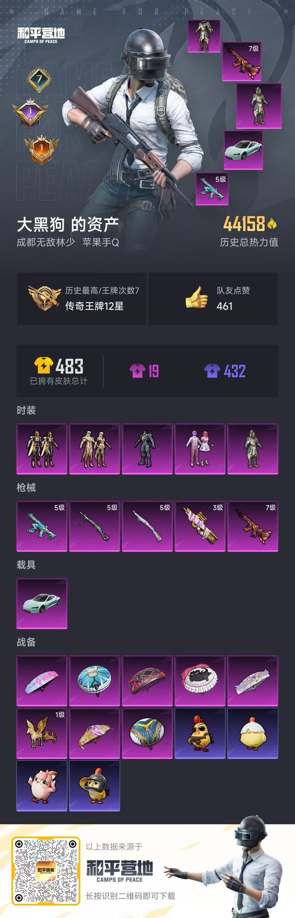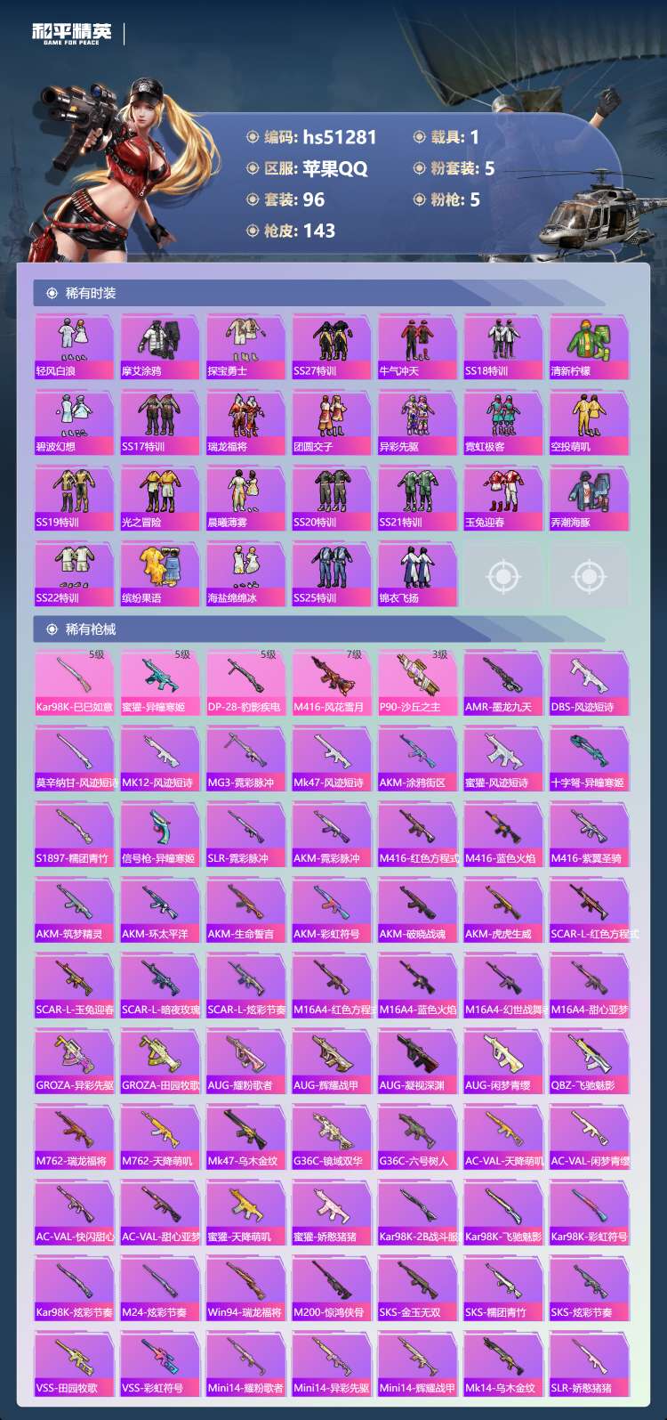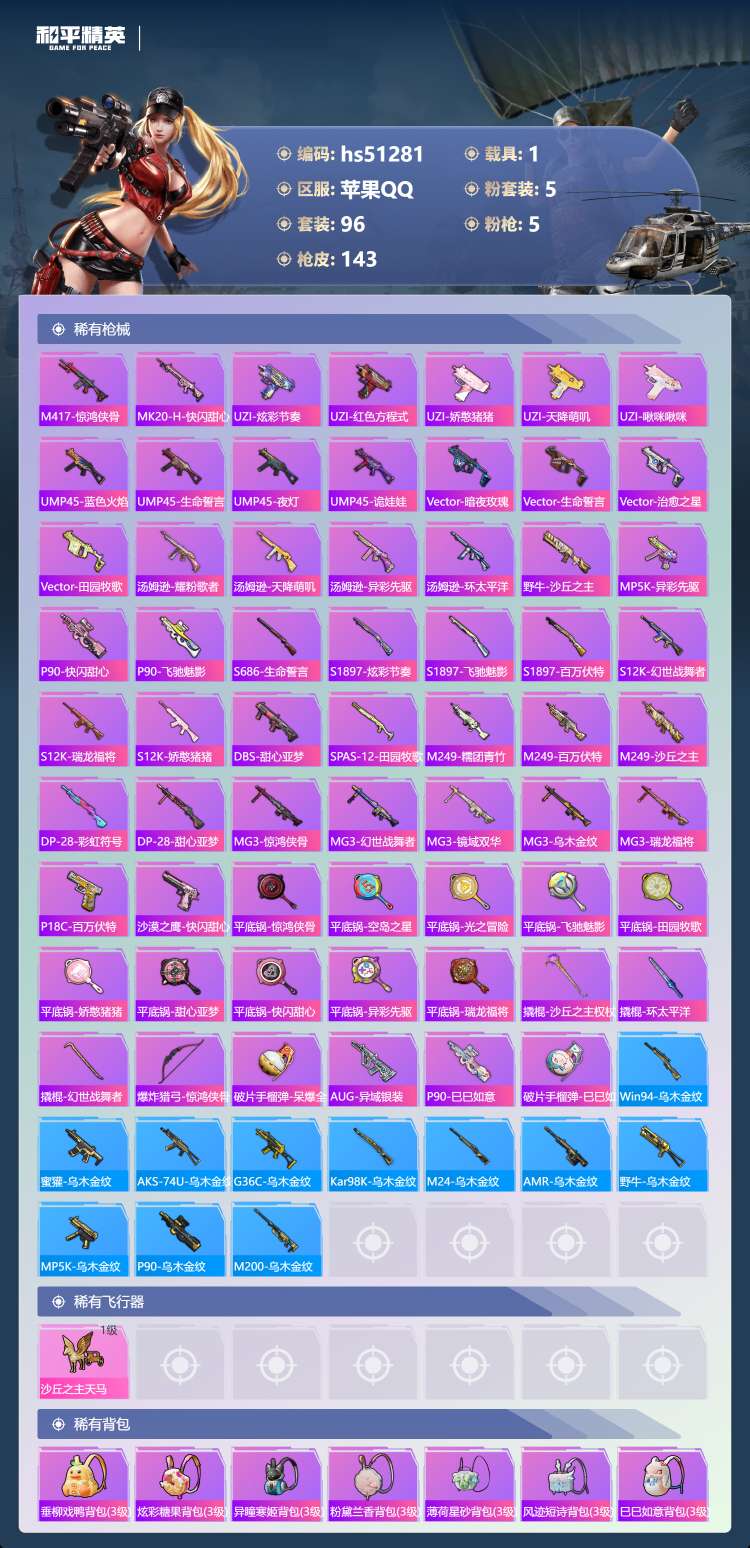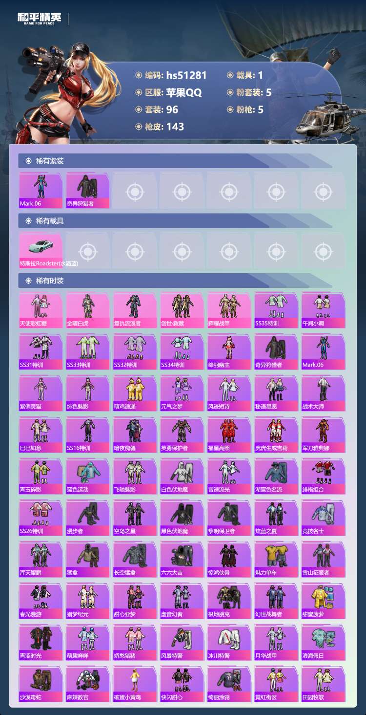 苹果手Q-7王牌印记-5粉装-5特效枪-1载具-96套装-143枪