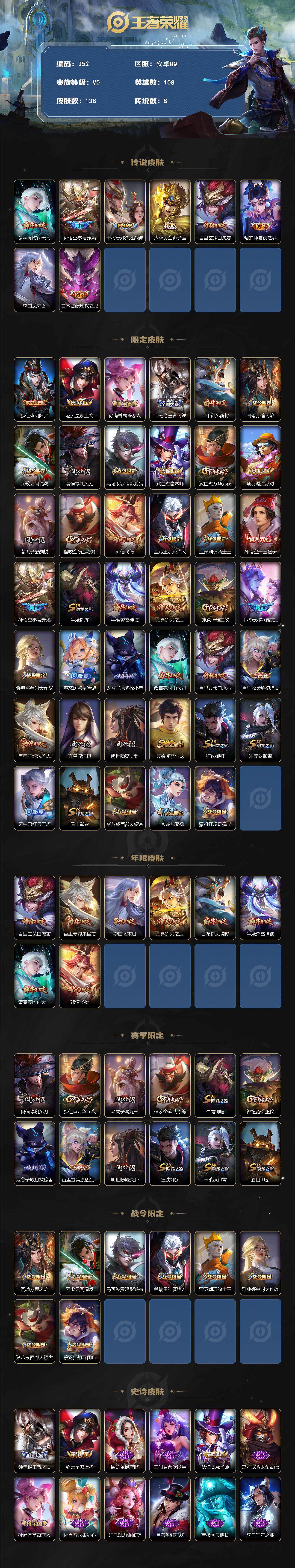 打野42段金标万战云中君王者荣耀账号安卓Q-V7-最强王者段位-108英雄-138皮肤-8传说-38史诗