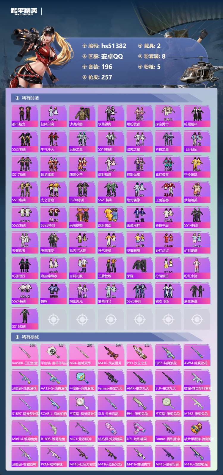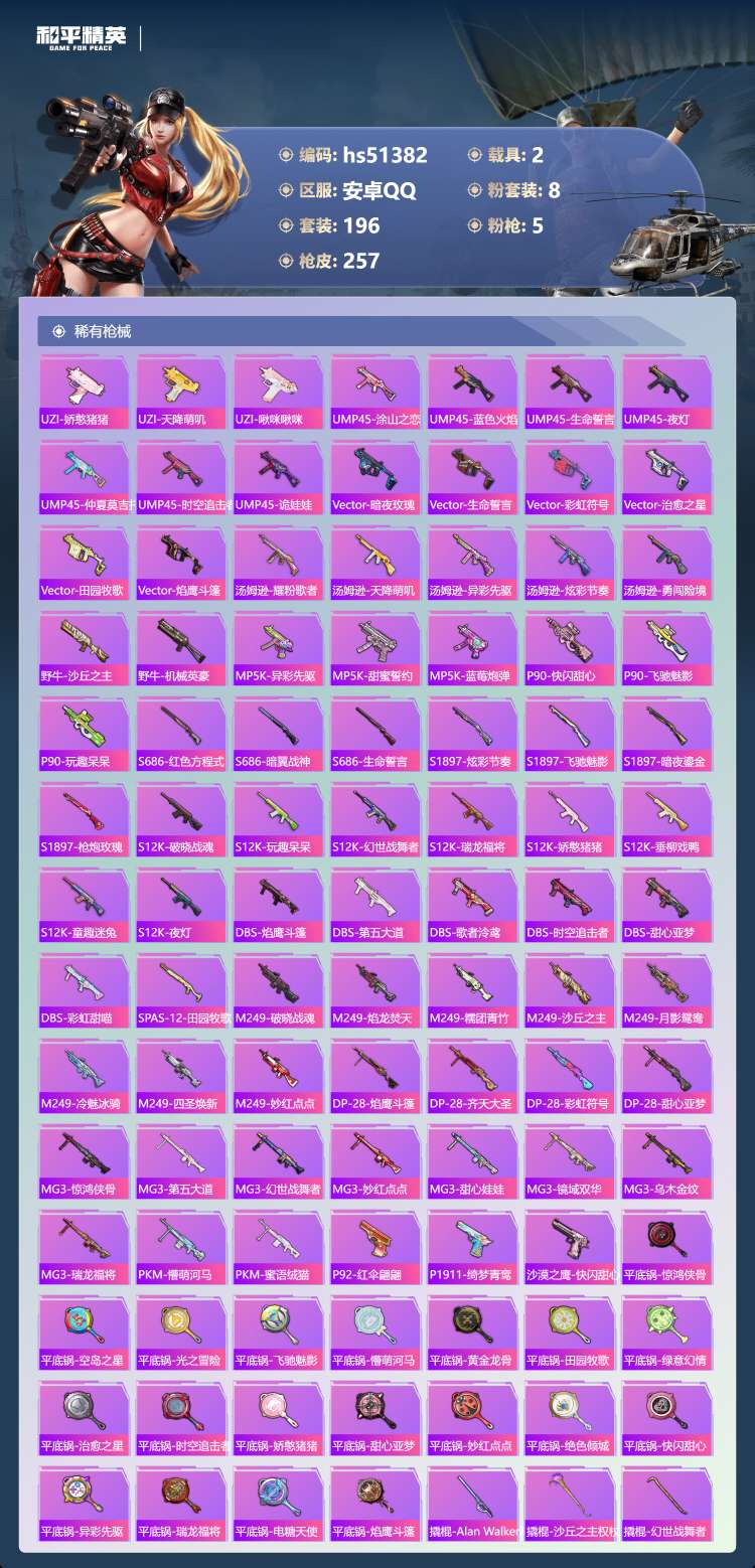 安卓手Q-16王牌印记-1红装-8粉装-5特效枪-2载具-196套