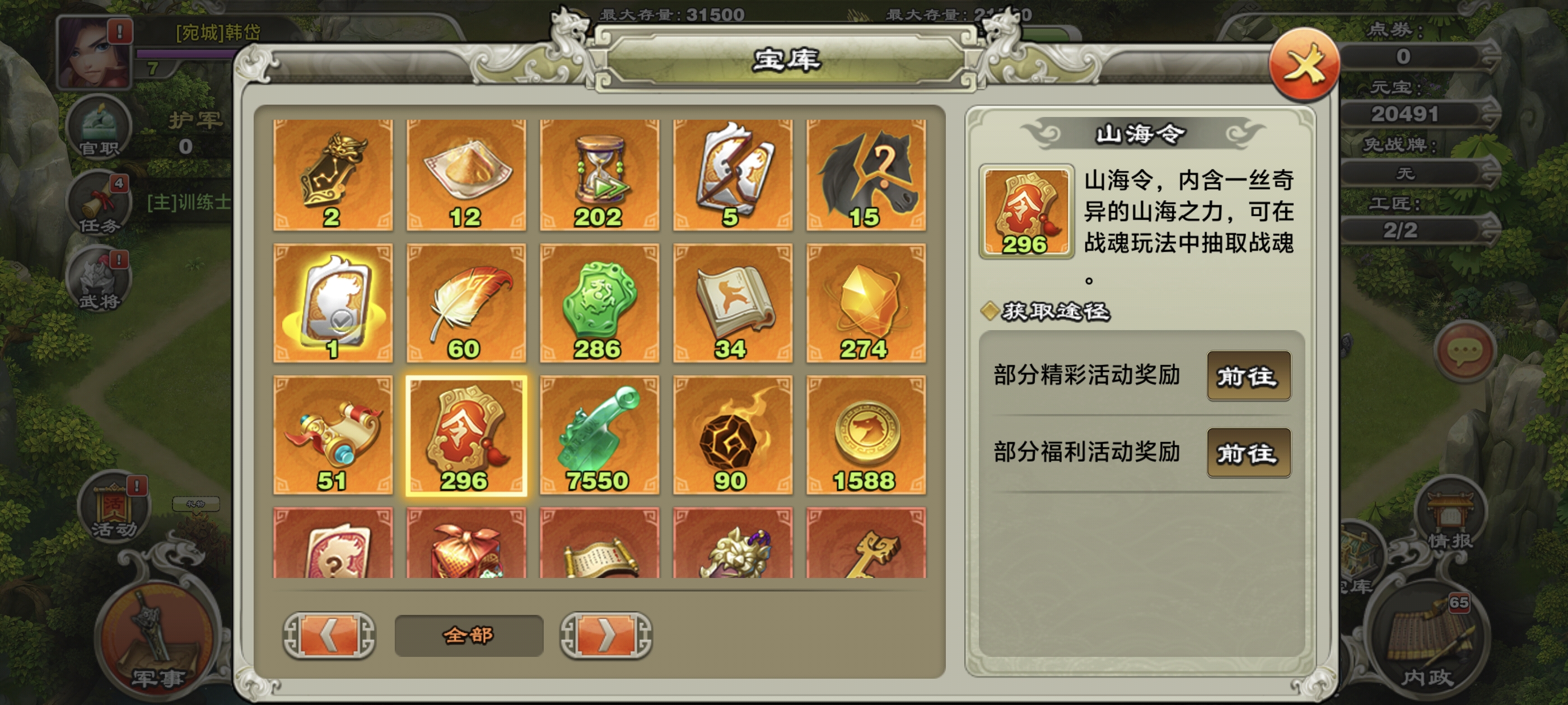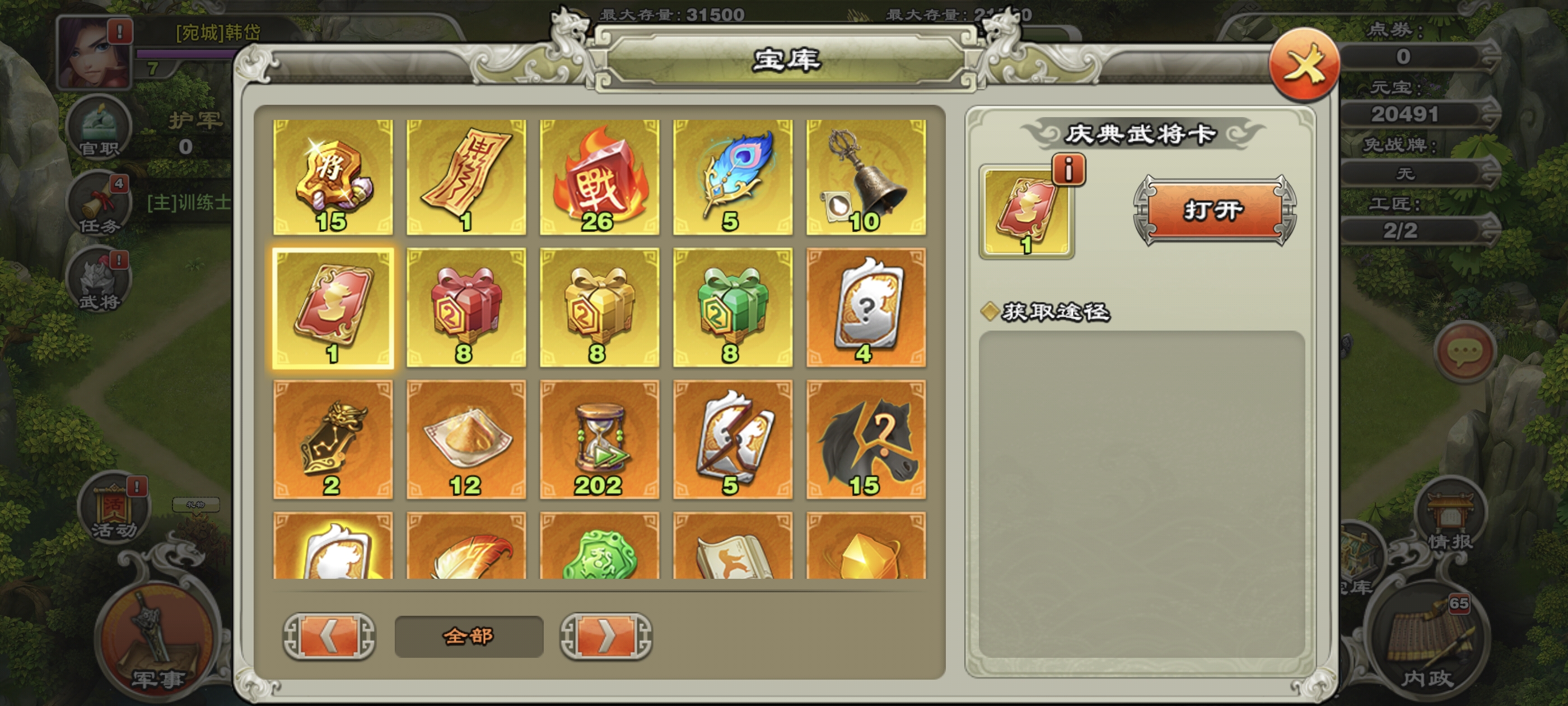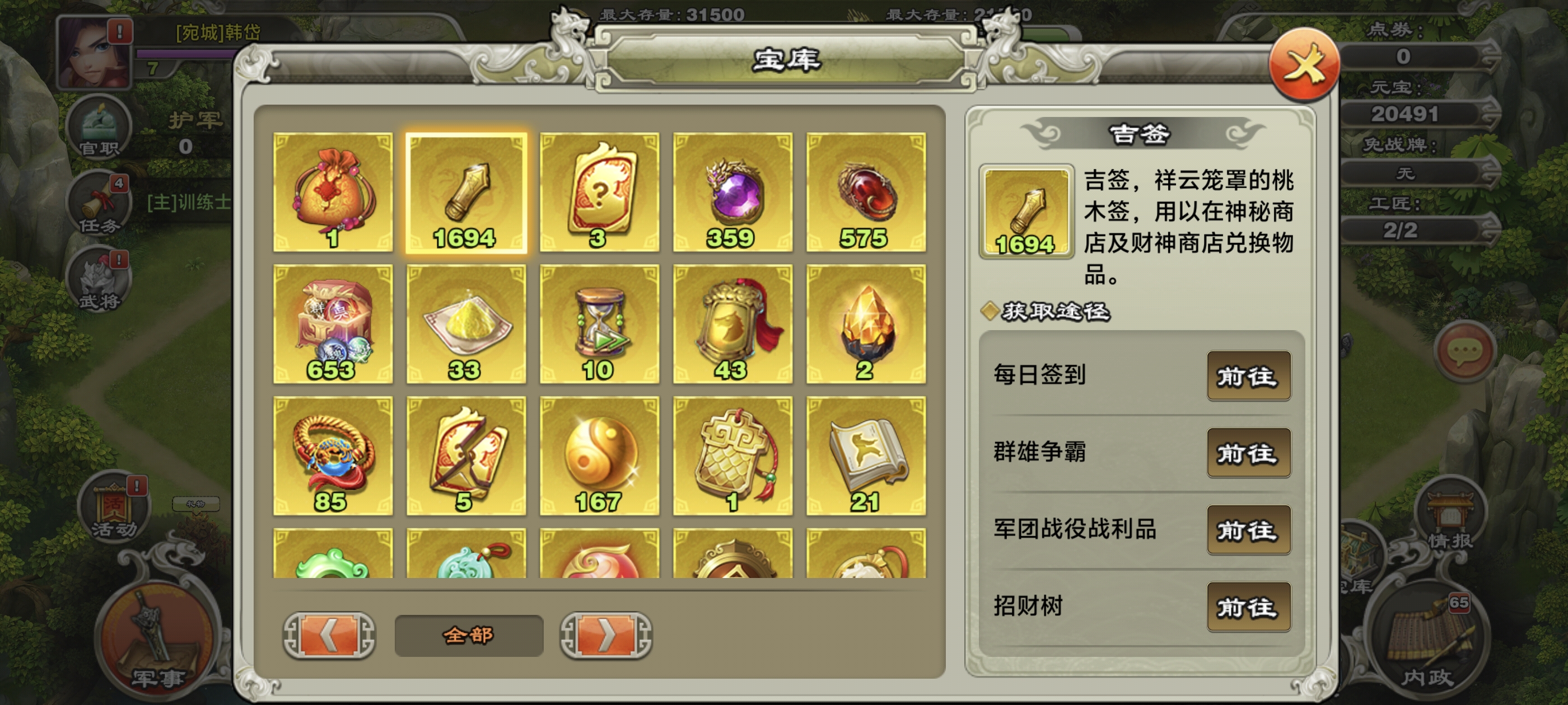 (官方端安卓、苹果手机通用),开局牛号,水镜许诸带1694吉签,20491元宝,带一个庆典武将卡777自选1