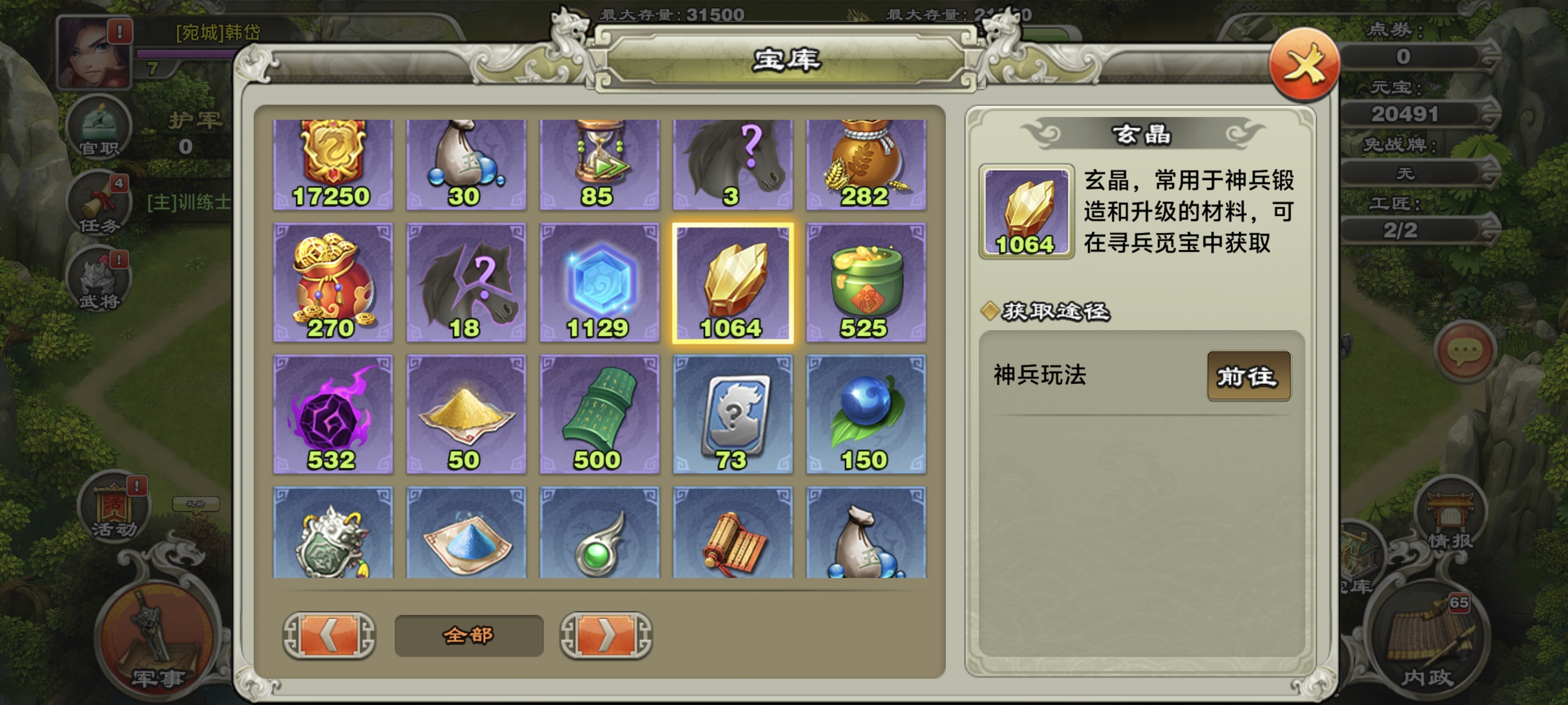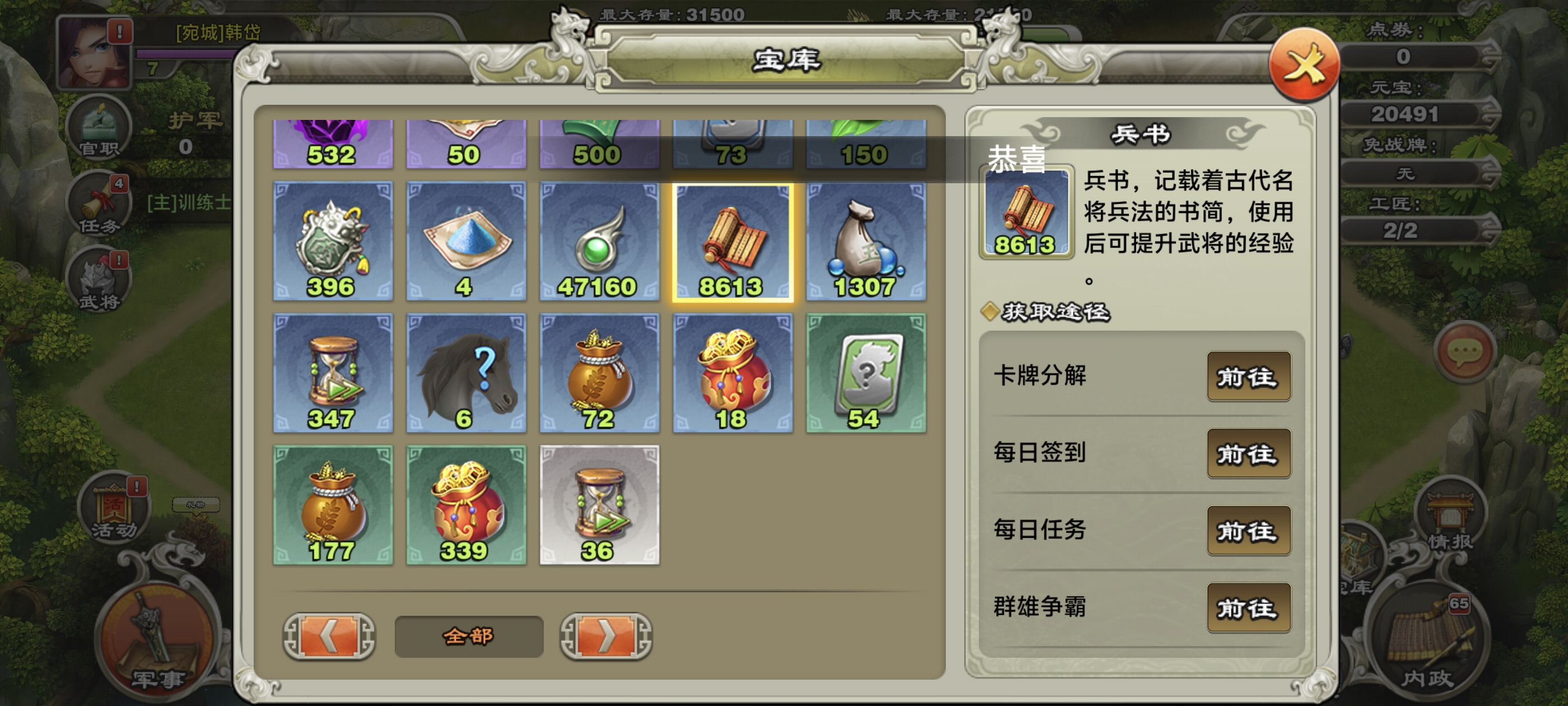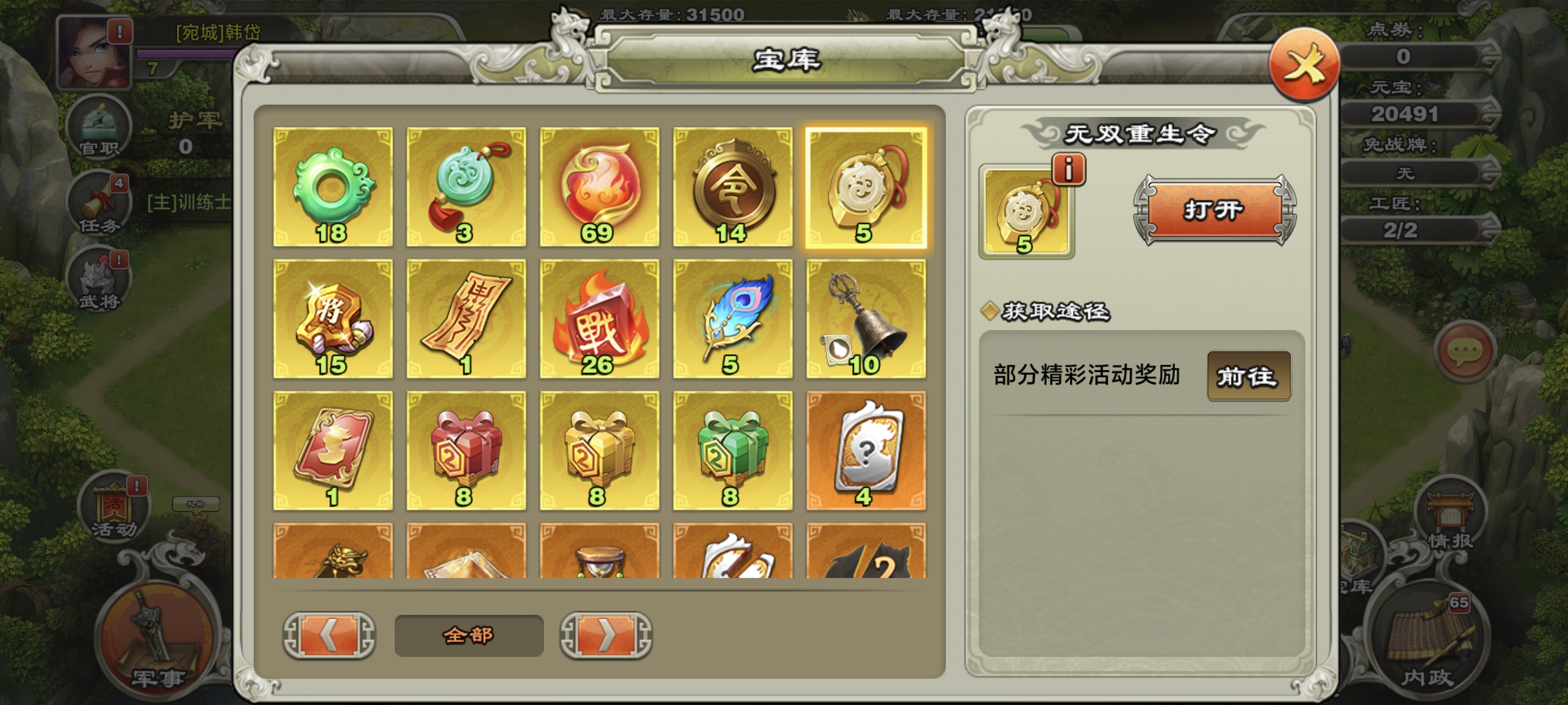 (官方端安卓、苹果手机通用),开局牛号,水镜许诸带1694吉签,20491元宝,带一个庆典武将卡777自选1