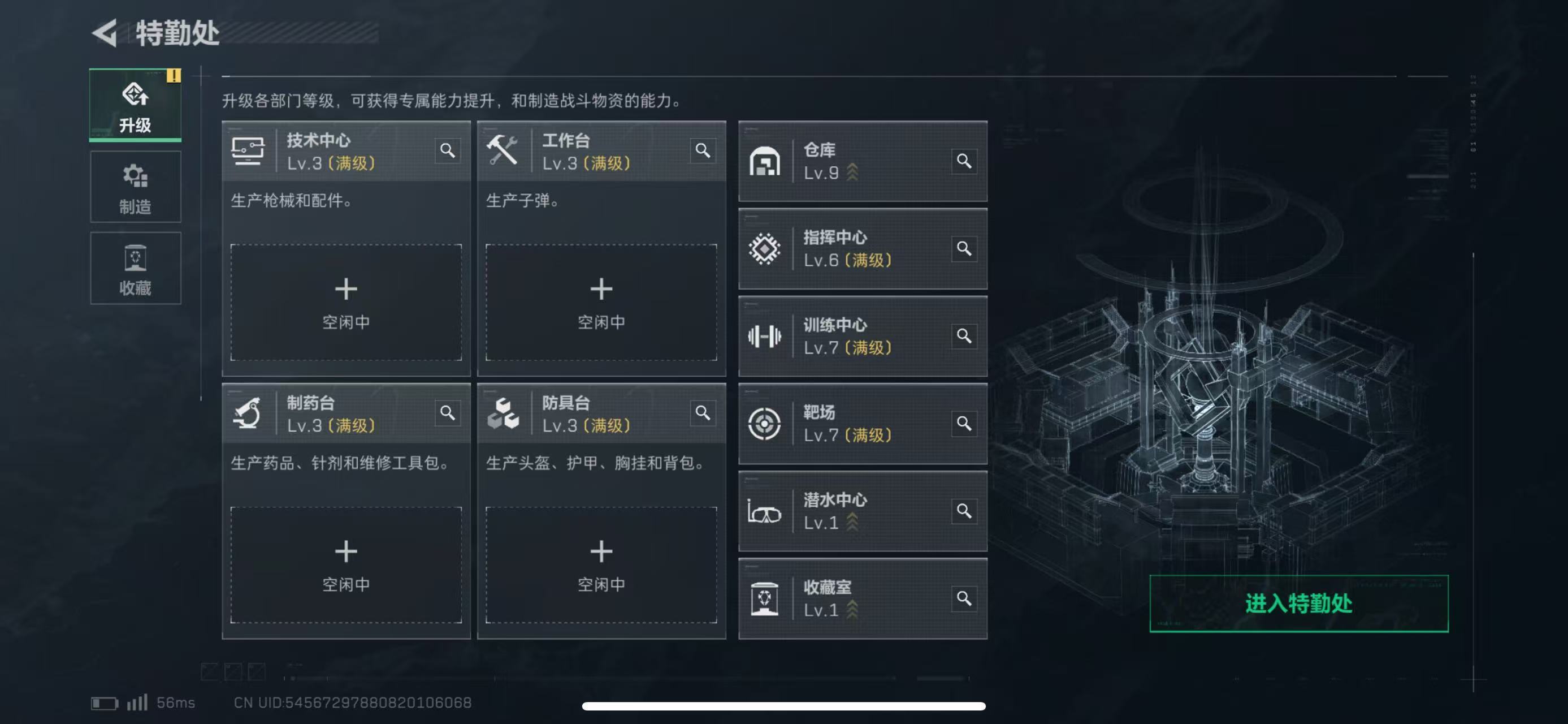 总资产190.58M,哈夫币 262.37K,战场等级:22 上等兵,行动等级:60 钻石,角色皮肤