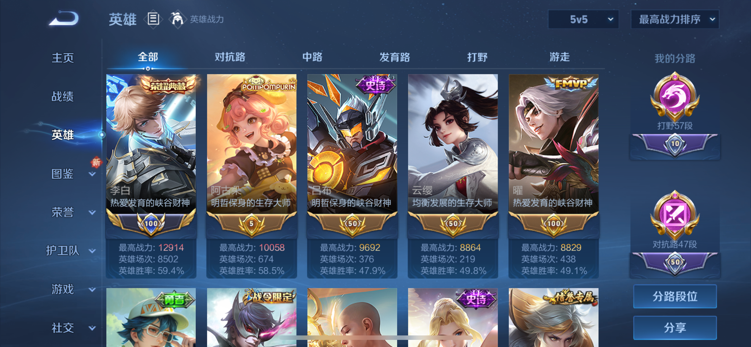 9000场小国李白号。李白全套按键及凤求凰专属回城。至尊宝神威等绝版皮肤。40+省标英雄