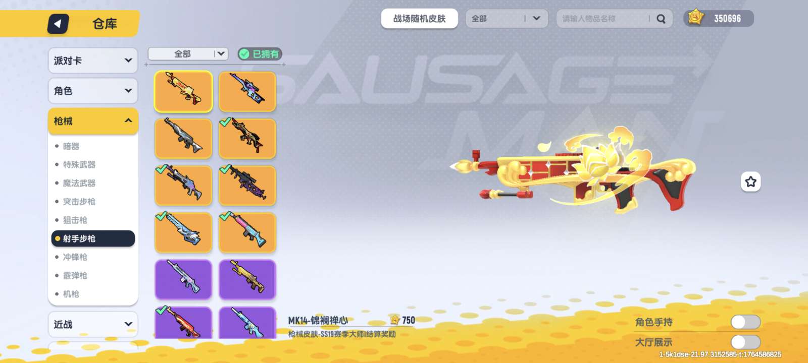 有s3龙骑士绝版机票,有肯德基联动皮肤,有手炮和UMP的升级枪皮,然后身法套装一堆,游戏活动套装很多