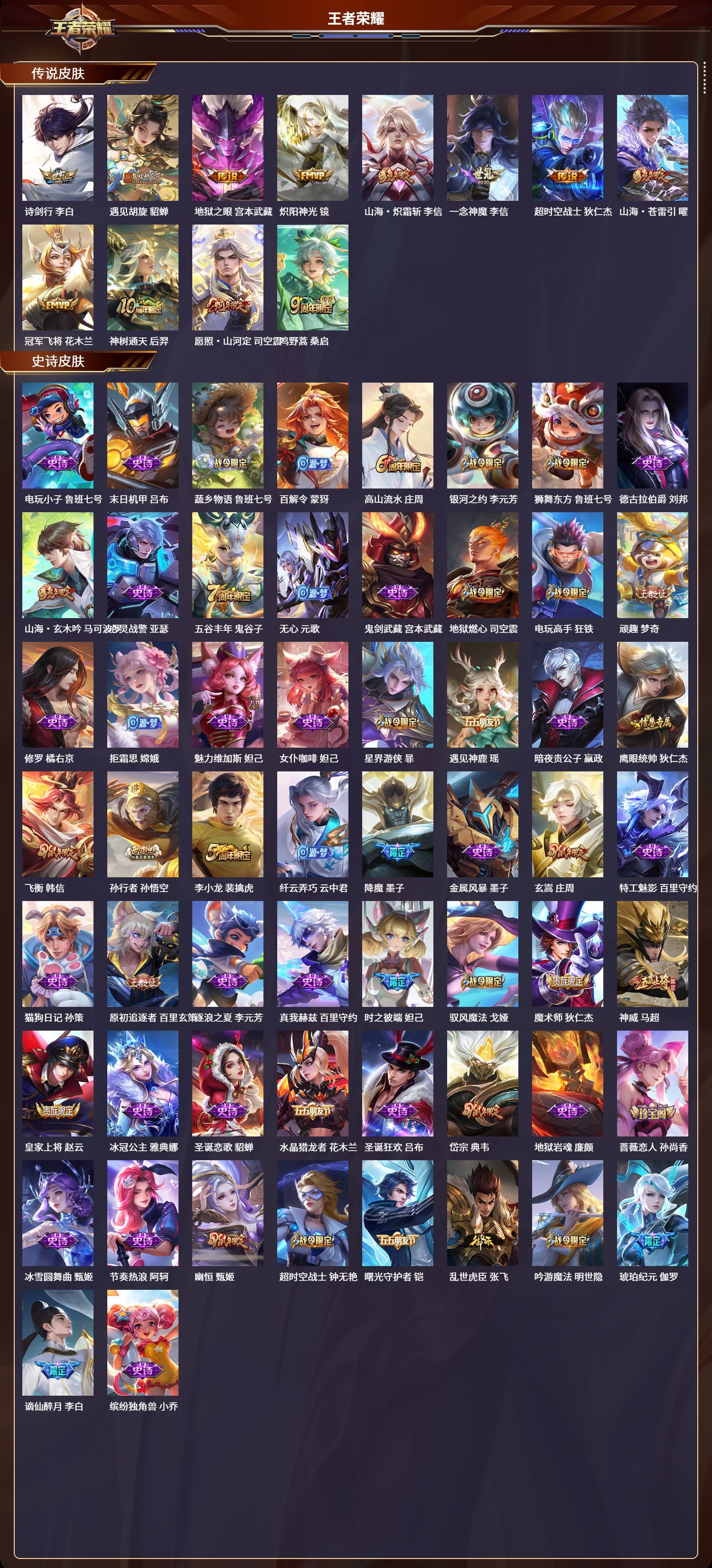 可二次实名/至圣王者【12 传说皮肤】诗剑行 李白,遇见胡旋 貂蝉,地狱之眼 宫本武藏,炽阳神光 镜