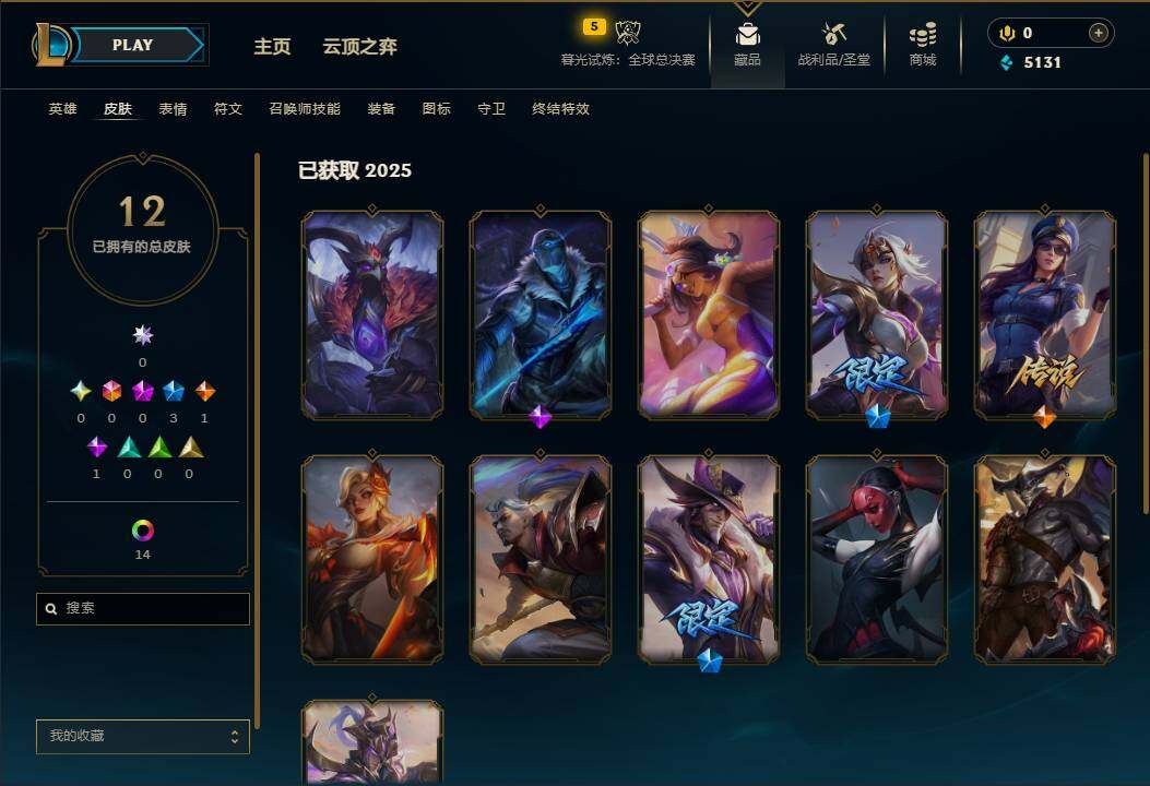 88英雄/12皮肤/3限定/1臻彩/14炫彩/1传说/