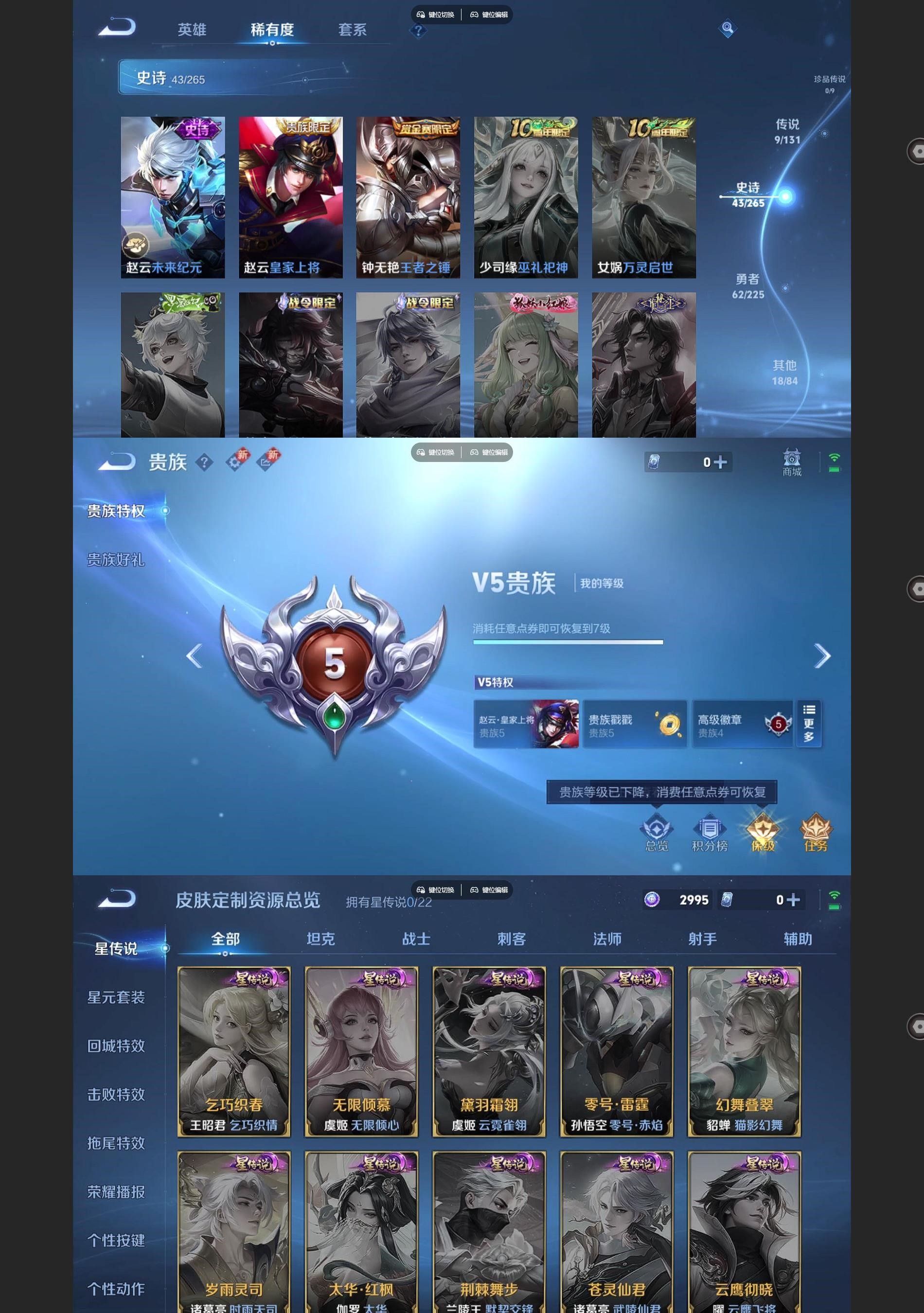 [王者荣耀]V79传说43史诗132皮肤至尊星耀V