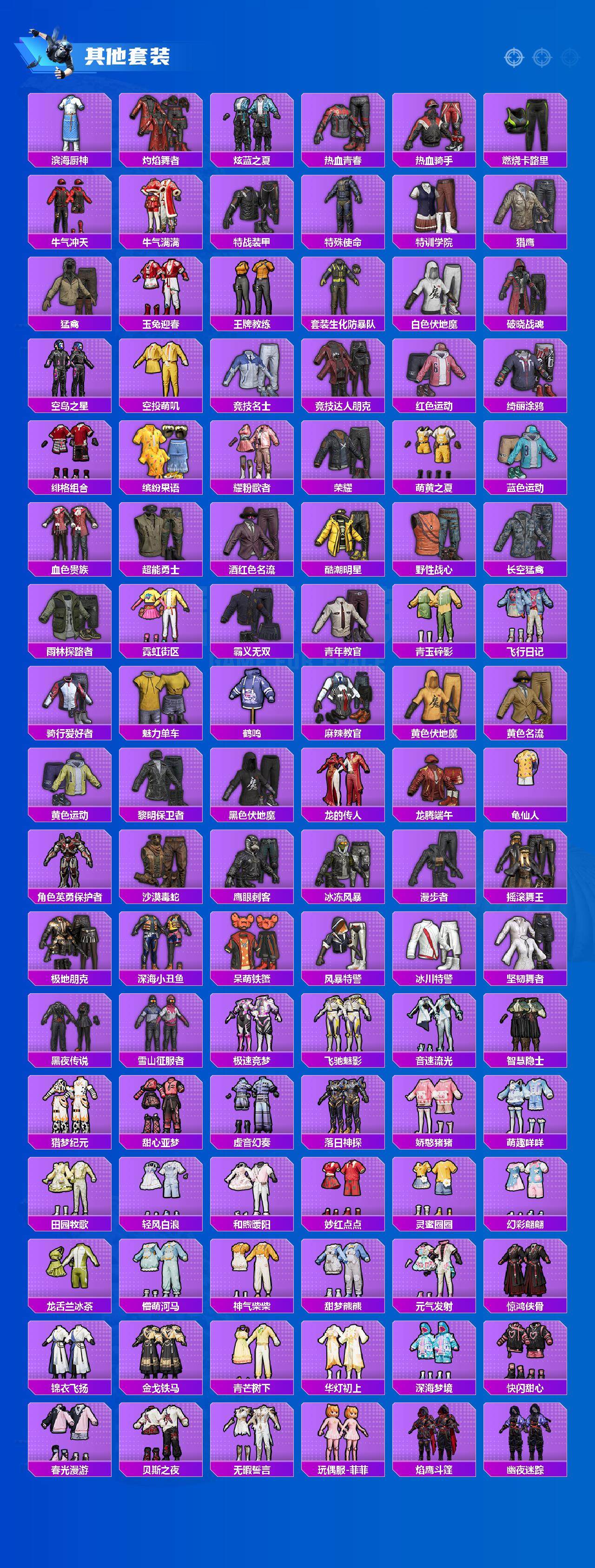 【粉色套装】:粉装-飒粉甜心,粉装-黄族统领,粉装-拂晓神骑,粉装-莲影清波,角色-千金淑猫,角色-萨利娅,角色-羊梦糖心