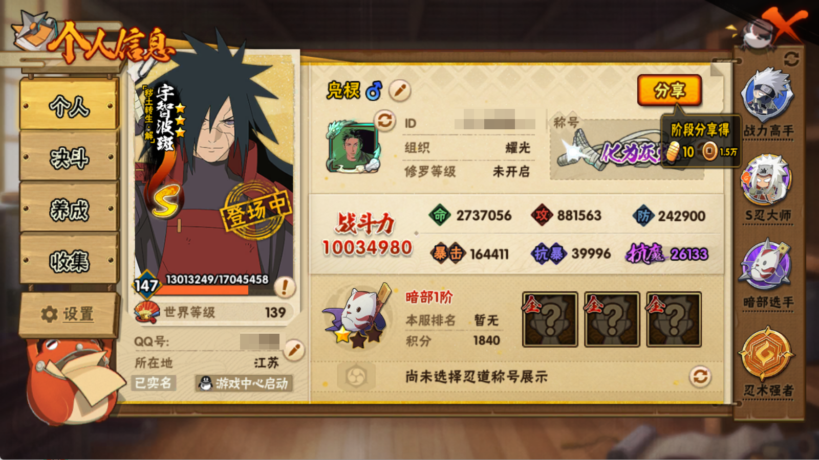 1003W战力 白破超 创斑25S+盾狗 扉武 新水3个198直购34A+三百战+3幕布
