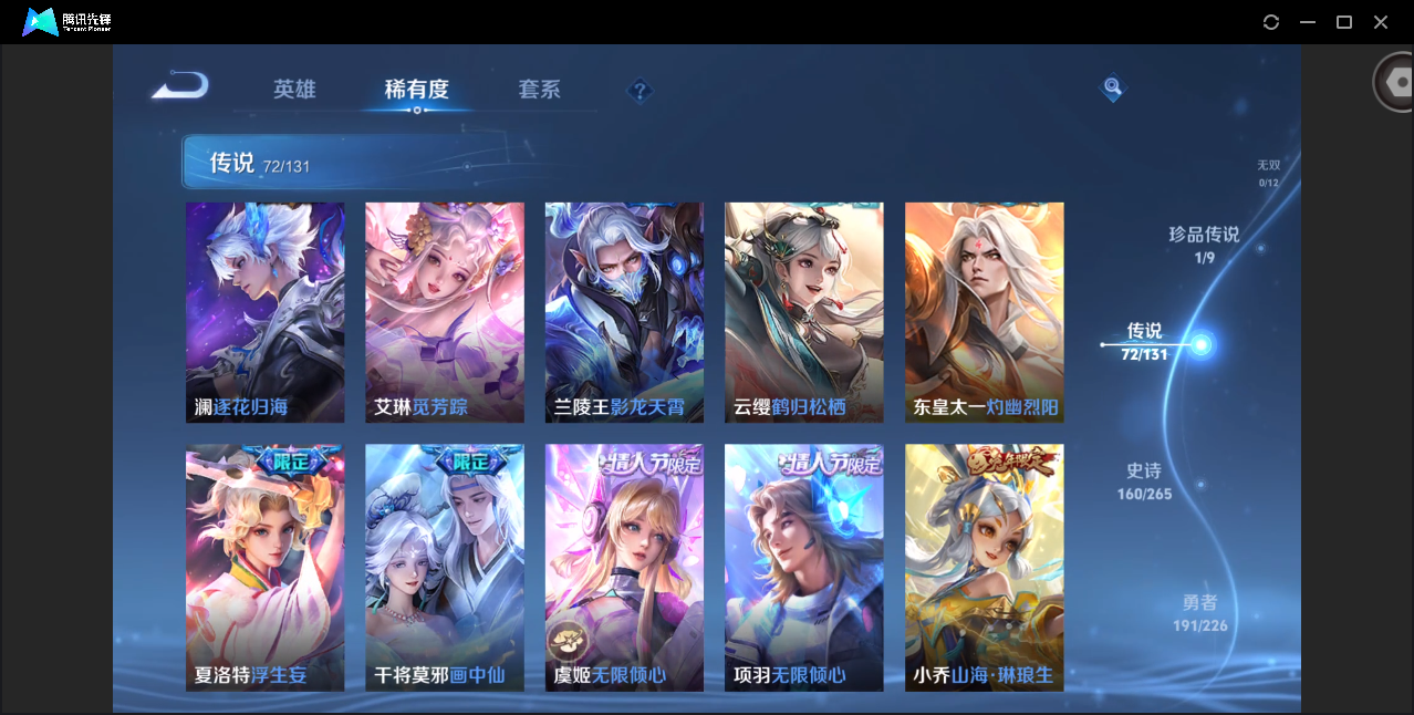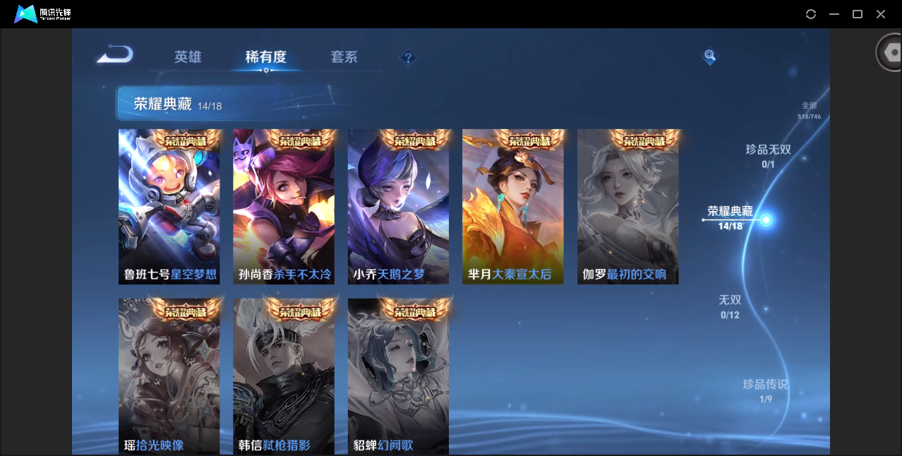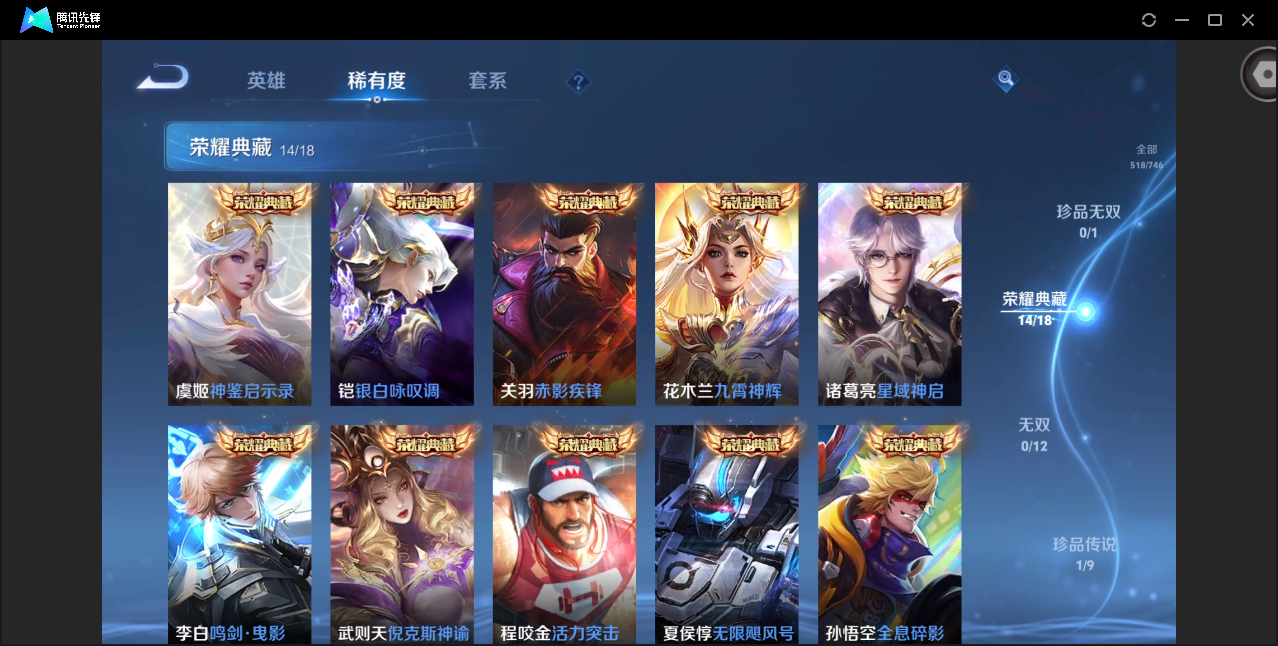 ky V10 可认证安卓(q)区 518皮 15典藏 1珍品传说 72传说 205限定 11王者印记