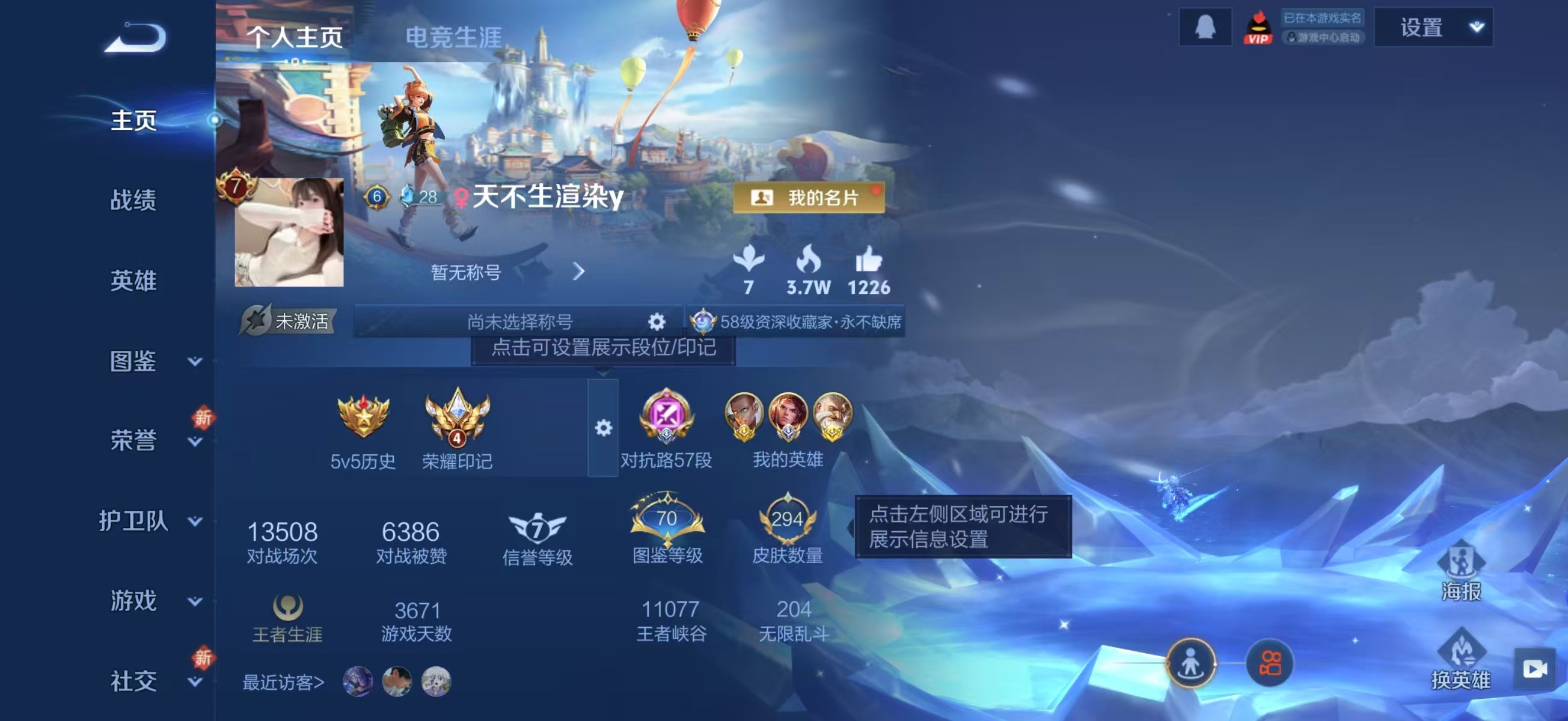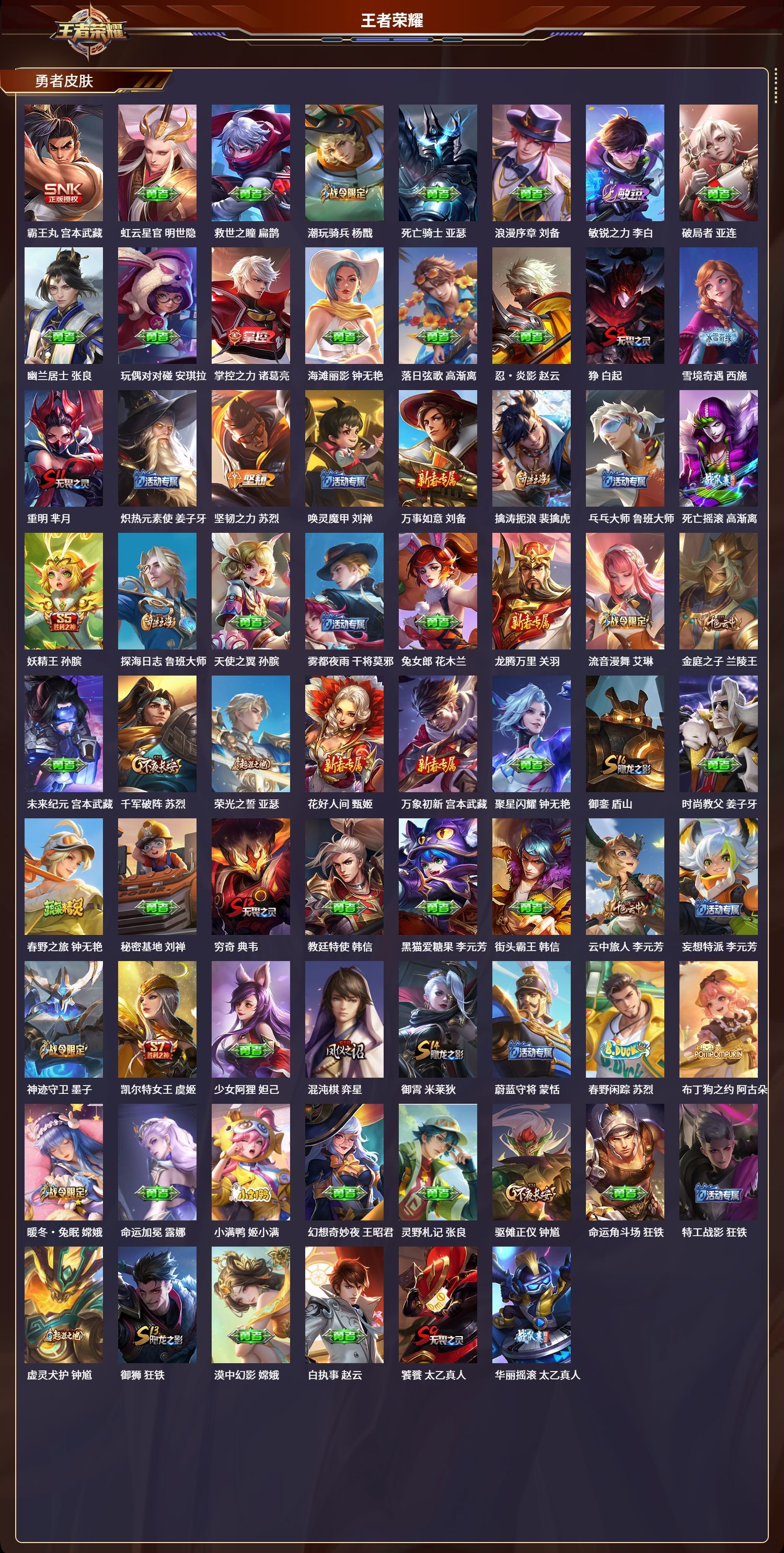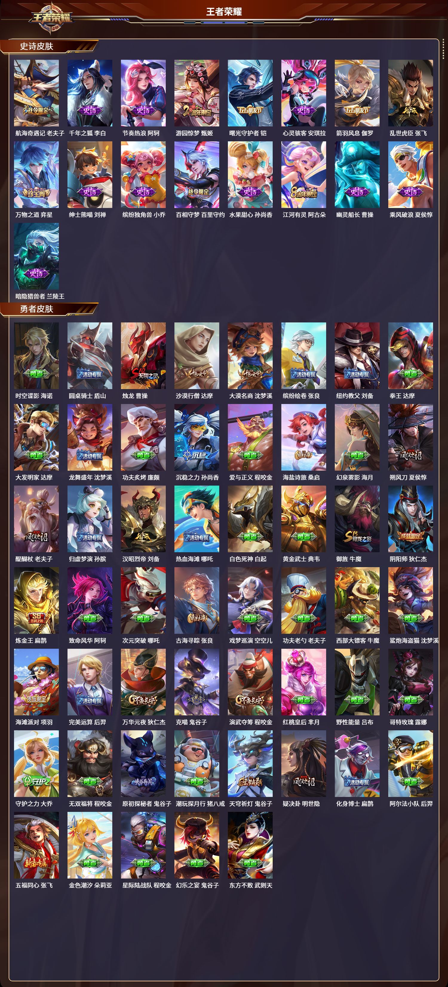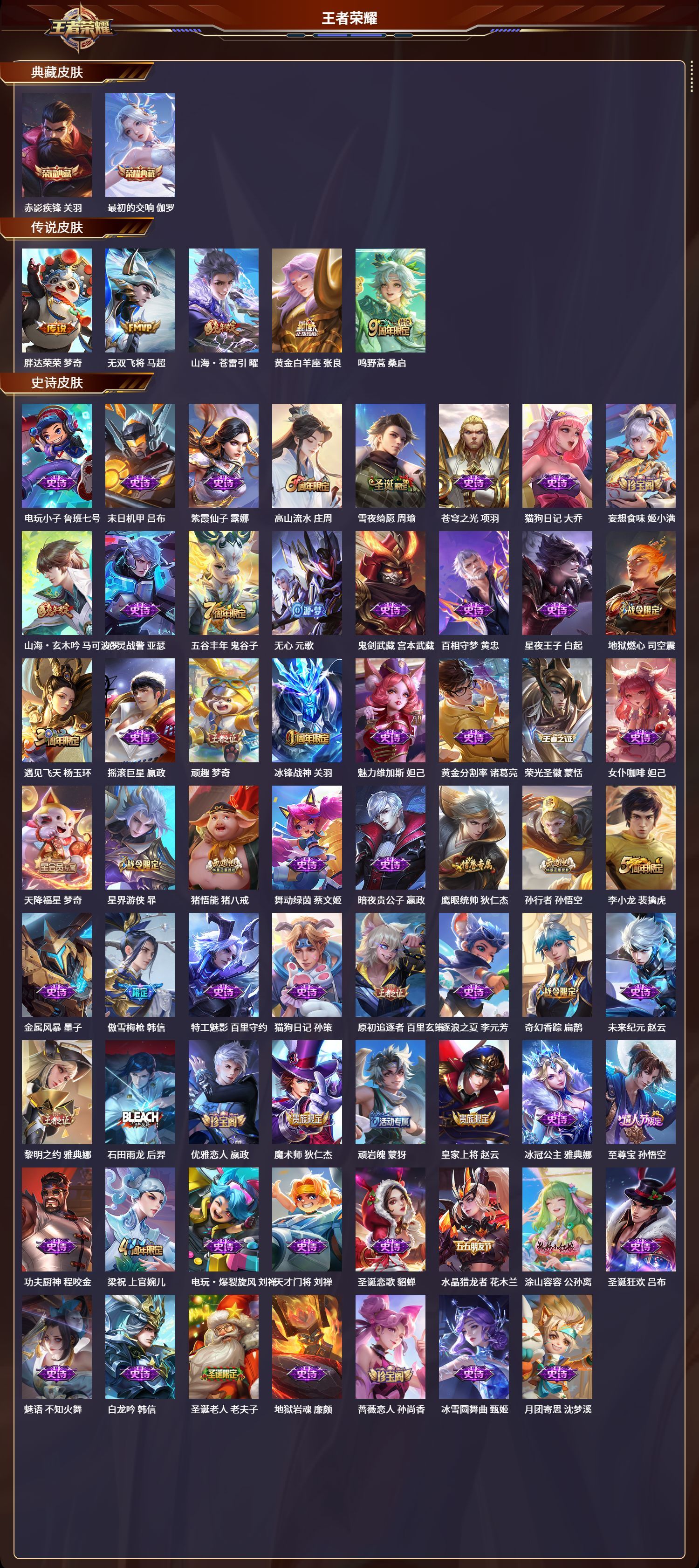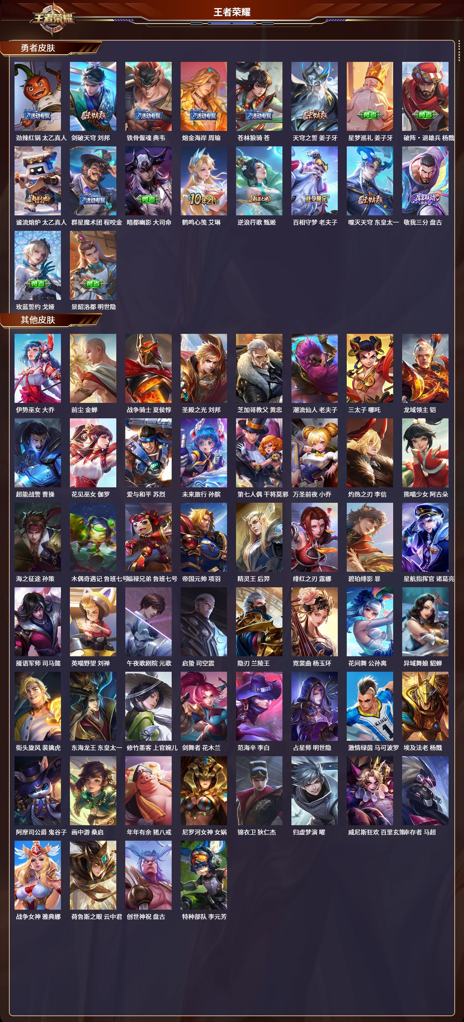 安卓QQ/至尊星耀/294皮肤/127英雄/2典藏/0珍品无双/0无双/0珍品传说/5传说/80史诗