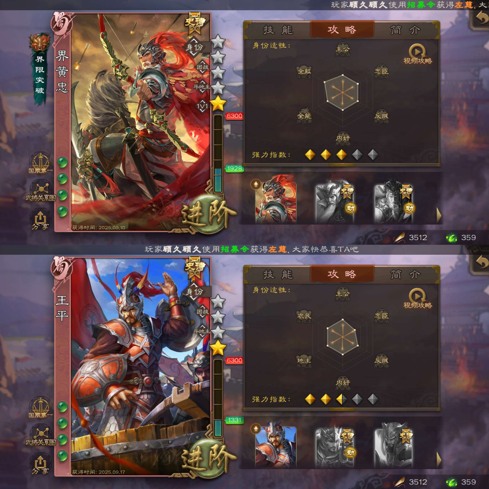 三国杀【安卓官方】友诸葛亮+界黄忠+王平精品先锋将军!材料充足,游卡官服字母格式活绑