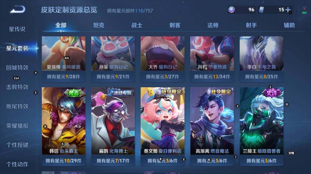 对抗19段,7按键 安卓Q-V6-126英雄-193皮肤-5传说-57史诗