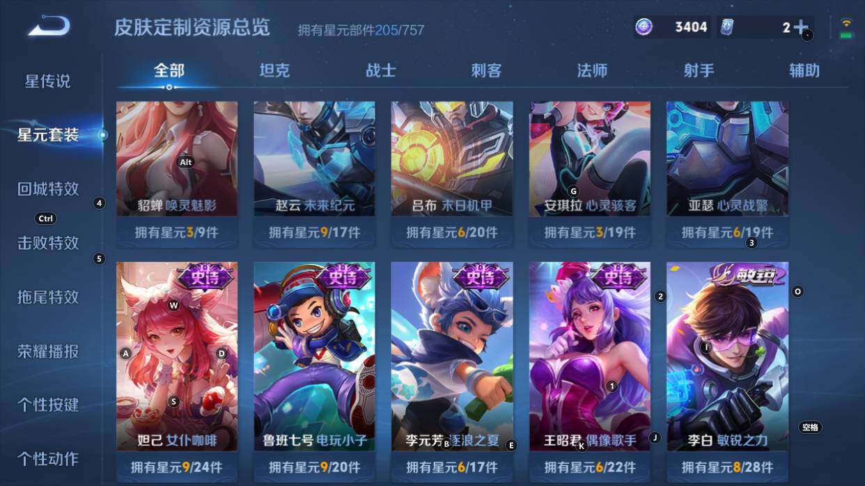 1星传说,21按键,打野22段发育18段,中路对抗16段,星币3404,贵族积