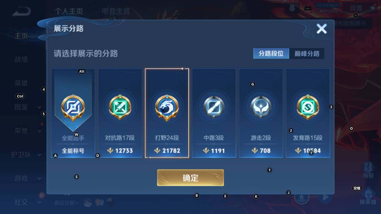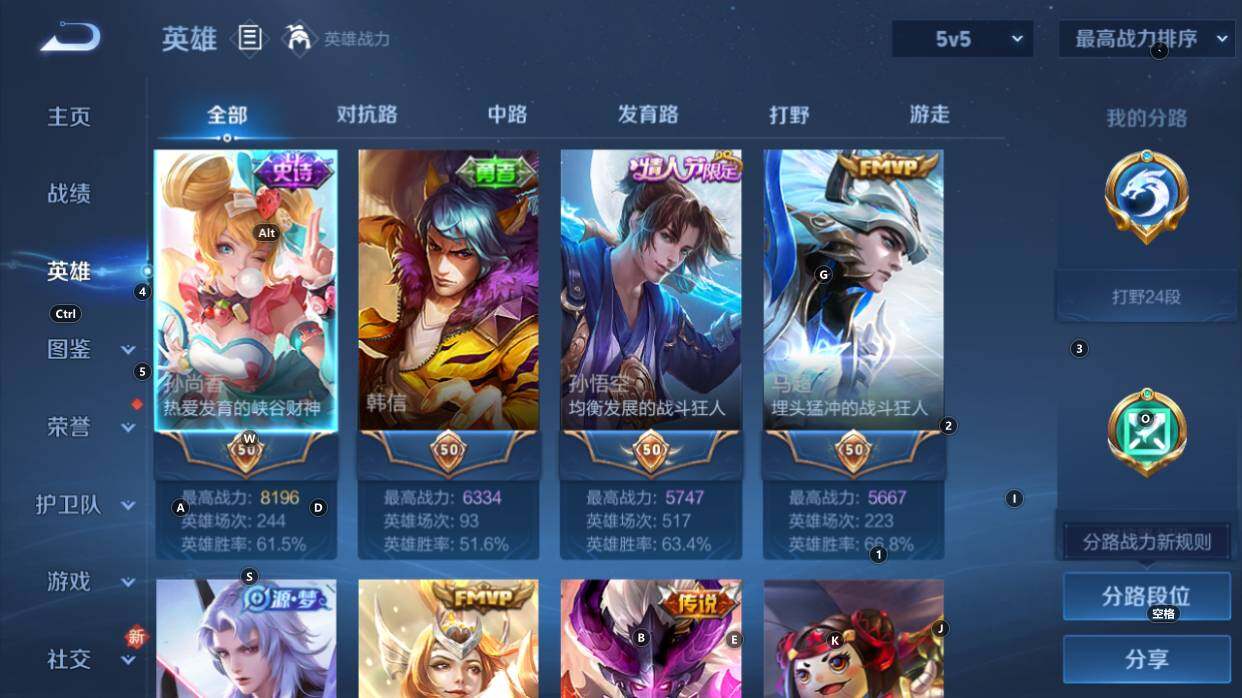 打野24段发育15段,星币2864 安卓Q-V5-125英雄-133皮肤-5传