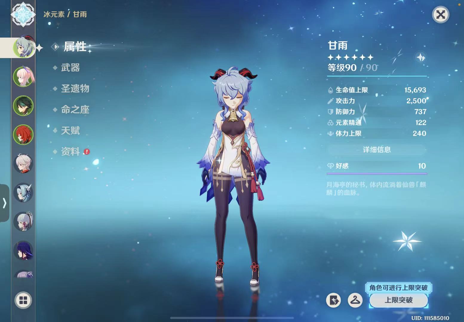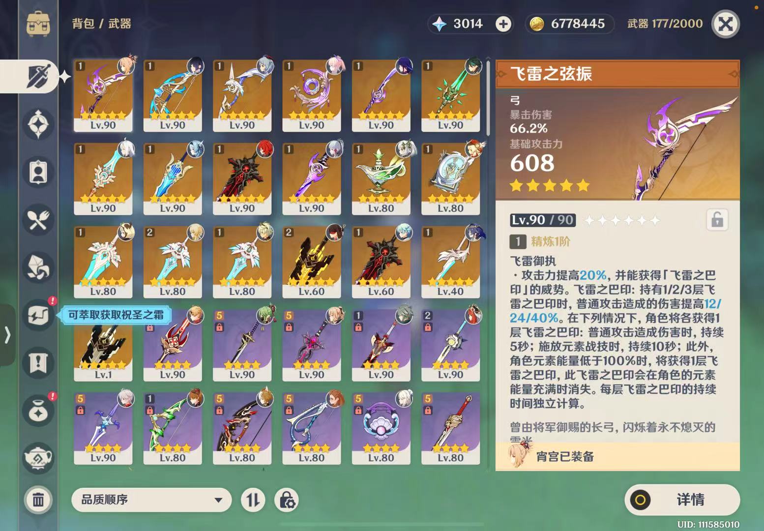 原神满级毕业号,高精专武,毕业圣遗物。