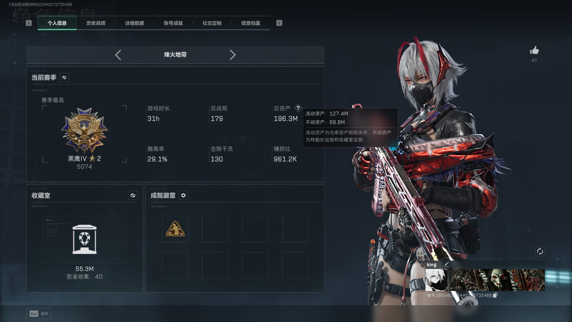 D10744/QQ区/可二次/钱包注销/【总资产:196.3M+S7顶级安全箱+近战北极星黑海+M7
