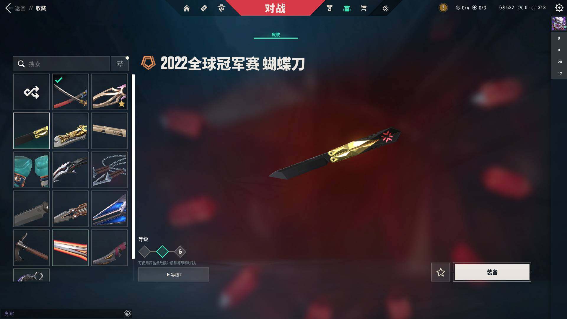 【近战 武器】:近战武器-2022全球冠军赛 蝴蝶刀,近战武器-魔术火花,近战武器-嘟昂嘟昂超弹力水球拳套,近战武器-影钩,近战武器-5周年//公测重制版 苍龙之刃,近战
